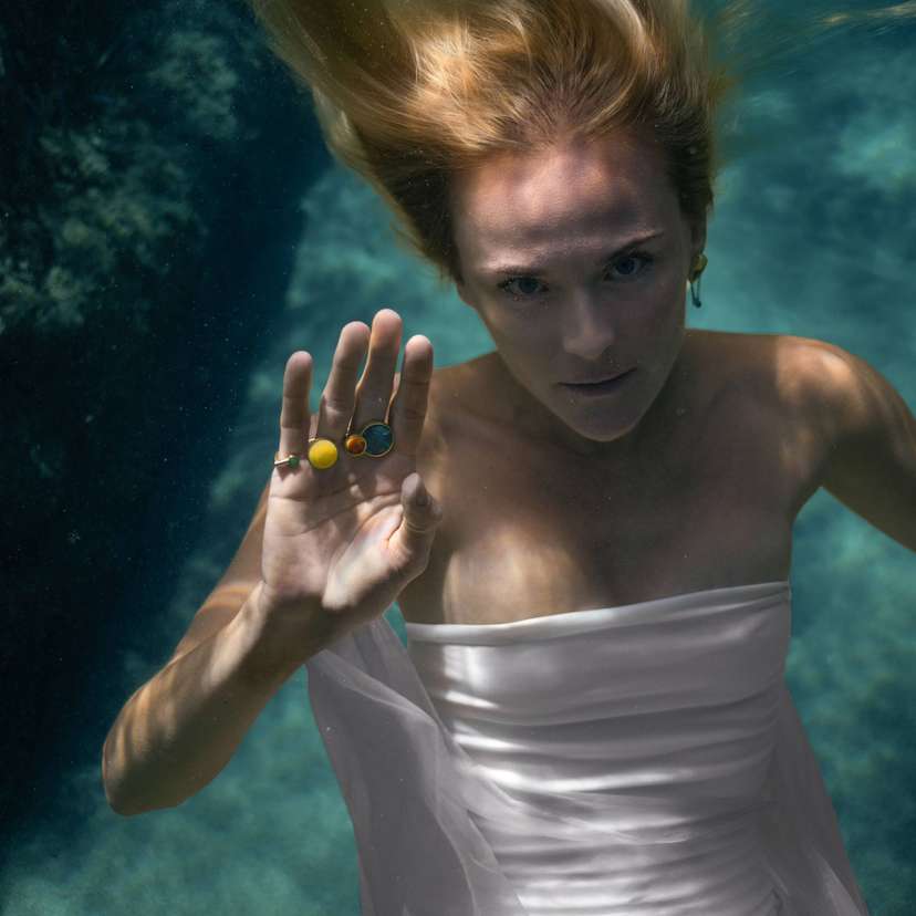 O pracach nad tą kolekcją Anna Orska opowiadała już w wywiadzie do 101 wydania K MAG-a. Projektantka zestawiła bursztyn z kamieniami Mare – bryłami sprasowanego proszku po sieciach rybackich, które wyłowiła z Bałtyku w ramach współpracy z fundacją o tej samej nazwie. Przygotowując kolekcję, Orska – jak to ma w zwyczaju – zjechała całą linię brzegową Bałtyku.