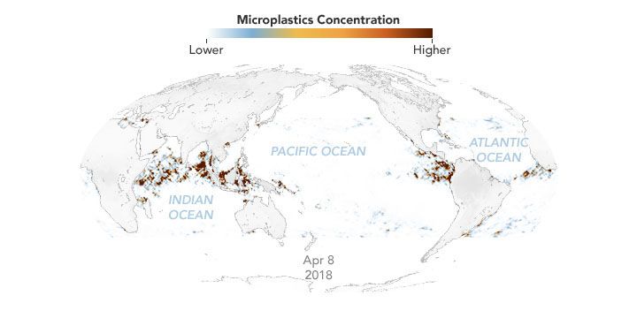 Co roku około 8 milionów ton plastiku spływa z rzek i plaż do oceanu. Odpady te są unoszone przez prądy oceaniczne i rozkładane przez fale i Słońce na mniejsze elementy. Cząsteczki o średnicy mniejszej niż 5 mm to właśnie mikroplastik. W niektórych obszarach oceanu gromadzi się go więcej niż w innych: Wielka Pacyficzna Plama Śmieci, która znajduje się między Kalifornią a Hawajami, jest bardzo dobrze znana – pływa w niej 180 razy więcej plastikowych śmieci niż jedzenia. Plastik jest ogromnym zagrożeniem dla fauny, ponieważ zwierzęta często mylą go z jedzeniem. Według ekologów to właśnie przez plastik ginie tak wiele ptaków i morskich zwierząt. Ich zdaniem blokuje on przewody pokarmowe zwierząt, przez co umierają one z głodu. NASA włączyła się w próby odpowiedzenia na ten problem i postanowiła zbadać, gdzie mikroodpadów jest najwięcej.