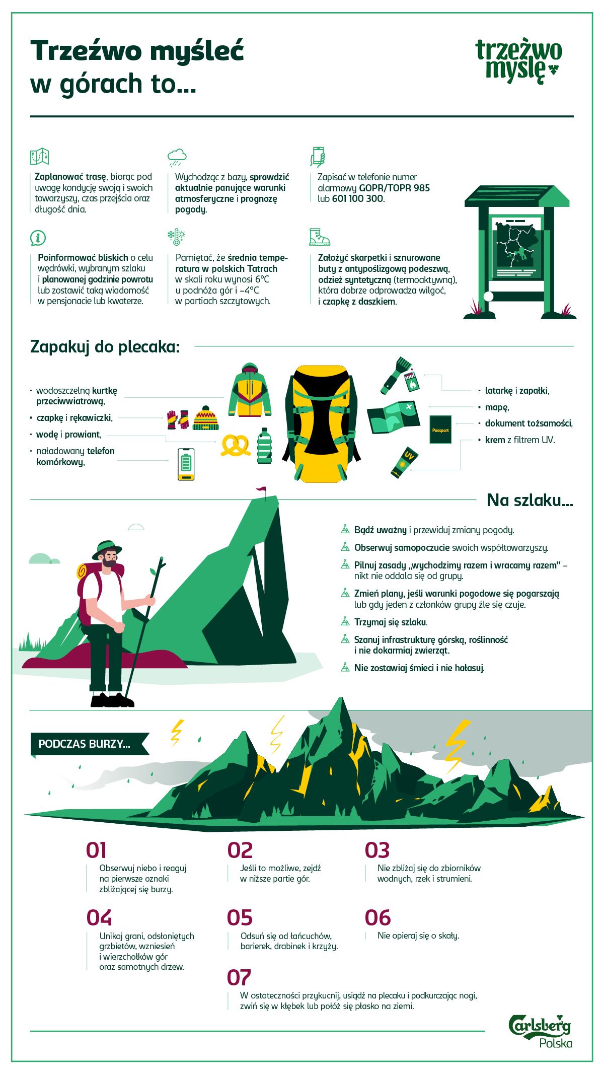 W poprzednich odsłonach program był adresowany do kobiet w ciąży, opiekunów małoletnich i kierowców oraz skupiał się na tym, aby pozytywnie i z humorem przekonywać do odpowiedzialnych decyzji w kontekście spożywania alkoholu. W 2020 r. Carlsberg Polska zwrócił się do miłośników gór, sportów wodnych oraz wszelkich wakacyjnych aktywności. Firma zaprosiła do współpracy Marcina Borkowskiego, ratownika medycznego i mistrza Europy w ratownictwie medycznym, Joannę Stępińską, wysokogórską przewodniczkę tatrzańskiego SWPT, oraz Tomasza Draczyńskiego z OSPR Ratownictwo Wodne – Warszawa. Eksperci udzielają porad, które są pomocne w zadbaniu o siebie i innych nad wodą, w górach oraz na drogach, a trzeźwe myślenie pomaga utrzymać kontrolę, bezpiecznie odkrywać świat i odczuwać więcej przyjemności oraz radości w codziennym życiu. Z tym przekazem organizatorzy tegorocznej edycji programu „Trzeźwo myślę” dotarli już do ponad 2,5 miliona odbiorców.