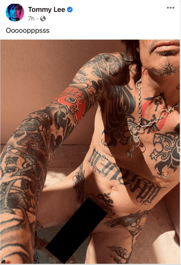 Muzyk na swoim koncie instagramowym opublikował swoje nagie zdjęcie z podpisem „Ooooopppsss”. Co więcej, jego okolice intymne nie były opatrzone żadną cenzurą. Zdjęcie zniknęło 6 godzin później zdjęte przez administrację Instagrama za naruszenie zasad serwisu. Tommy Lee obecnie na swoim koncie ma 1,5 miliona obserwatorów.