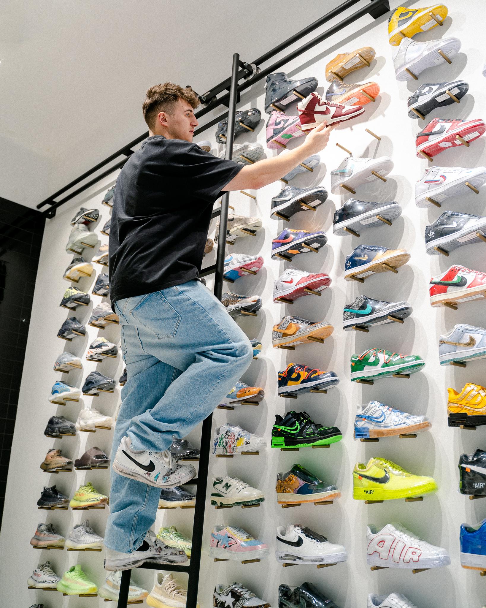 To właśnie nastolatkowie i młodzi dorośli stanowią znakomitą większość klientów Pawła. Grail.3.0 różni się od jego pierwszego lokalu zaaranżowanego w klimacie DIY. Minimalistyczne, monochromatyczne wnętrze ożywia ściana od sufitu aż po podłogę zagospodarowana barwnymi sneakersami obleczonymi przeźroczystą folią – wielu kolekcjonerów nigdy jej nie zdejmie, nigdy nie przymierzy zakupionej pary. Czy buty kolekcjonerskie w ogóle się nosi? Maks nie wyobraża sobie odłożenia swoich sneakersów na półkę w nienaruszonym stanie:
