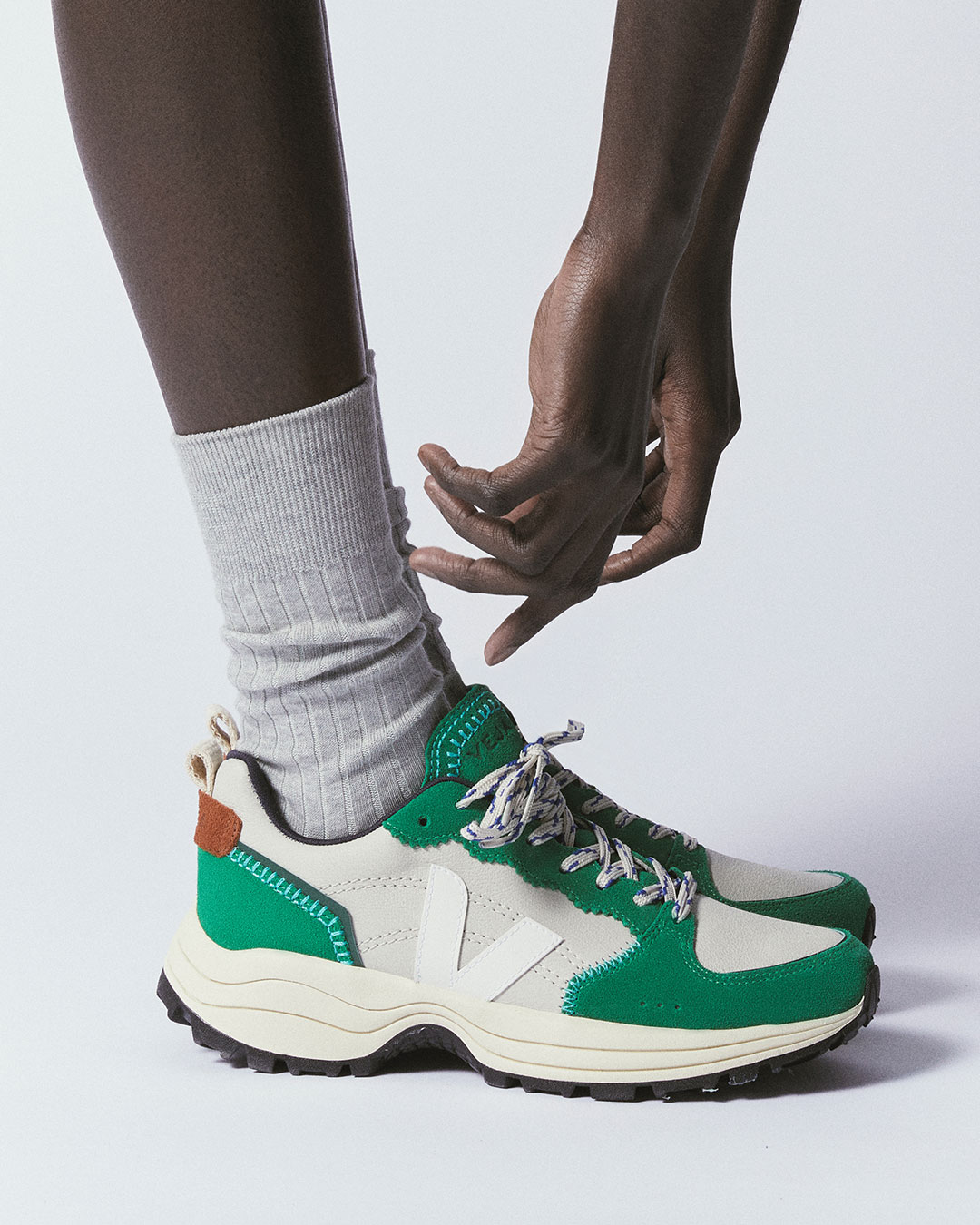 W tej ekskluzywnej edycji kultowy model został wzbogacony o nowe detale, starannie zaprojektowane z myślą o stylu i komforcie w unikalnym stylu BIMBA Y LOLA. Zamszowa naszywka podkreśla tożsamość BIMBA Y LOLA, a haft na języku uwydatnia logo brazylijskiej marki. Kreatywne zespoły obu marek współpracowały przy opracowywaniu unikalnego i innowacyjnego modelu, który łączy amortyzowaną podeszwę i konstrukcję wspierającą, zapewniającą komfort, z którym VEJA jest kojarzona.