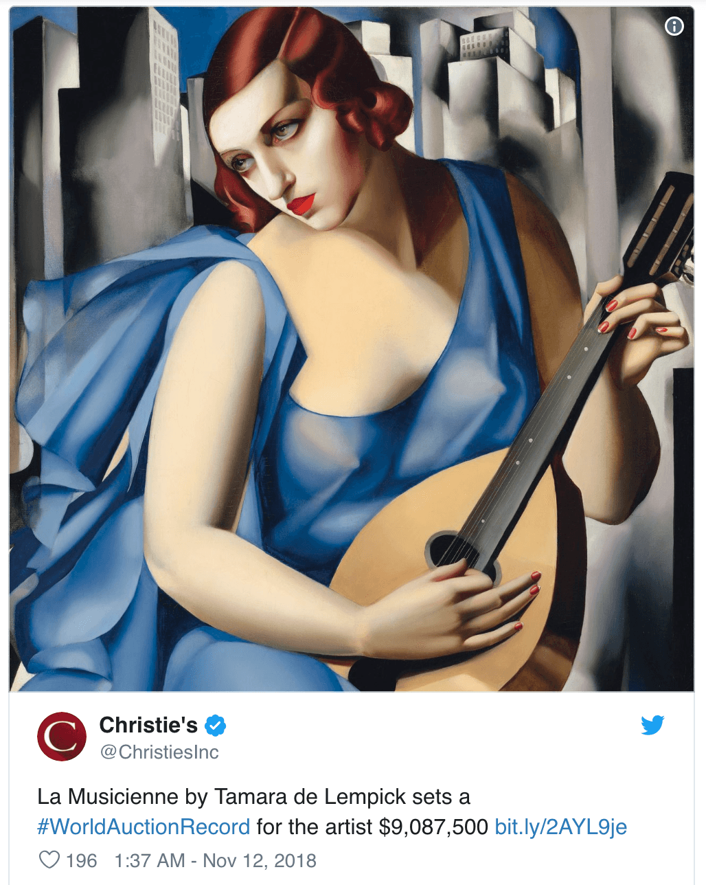Tak wygląda wylicytowany właśnie za rekordową kwotę obraz "La Musicienne" Tamary Łempickiej: