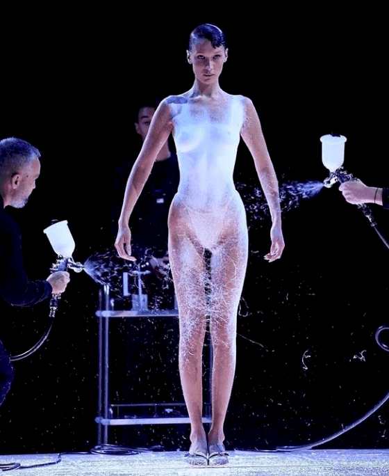 Największe emocje wzbudził jednak finał pokazu Coperni na wiosnę-lato 2023, którego najjaśniejszą gwiazdą została Bella Hadid. Młodsza z sióstr pojawiła się na wybiegu ubrana jedynie w cieliste majtki. Chwilę później modelkę otoczył zespół techników pod przywództwem Dr Manela Torresa, założyciela Fabrican Ltd i wynalazcy tkaniny w spreju, który spryskał ją strumieniem białej farby.