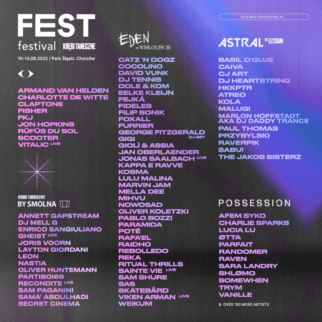 A najlepsze jest to, że każdy będzie mógł znaleźć coś dla siebie. Na miłośników alternatywy czeka scena MAGIC FOREST, na której pojawią się artyści wymykający się gatunkowym etykietom, w tym m.in. Dawid Tyszkowski, Jakub Skorupa, PAULA ROMA, Bluszcz, Jagoda Kret czy KIWI. Z kolei wielbicielom muzyki elektronicznej dedykowane są energetyzujące Kręgi Taneczne, na których wystąpią wybitni twórcy muzyki elektronicznej, tacy jak np. Armand Van Helden, Charlotte de Witte, Scooter, Catz 'N Dogz, George Fitzgerald, Rüfüs Du Sol czy The Jakob Sisterz.