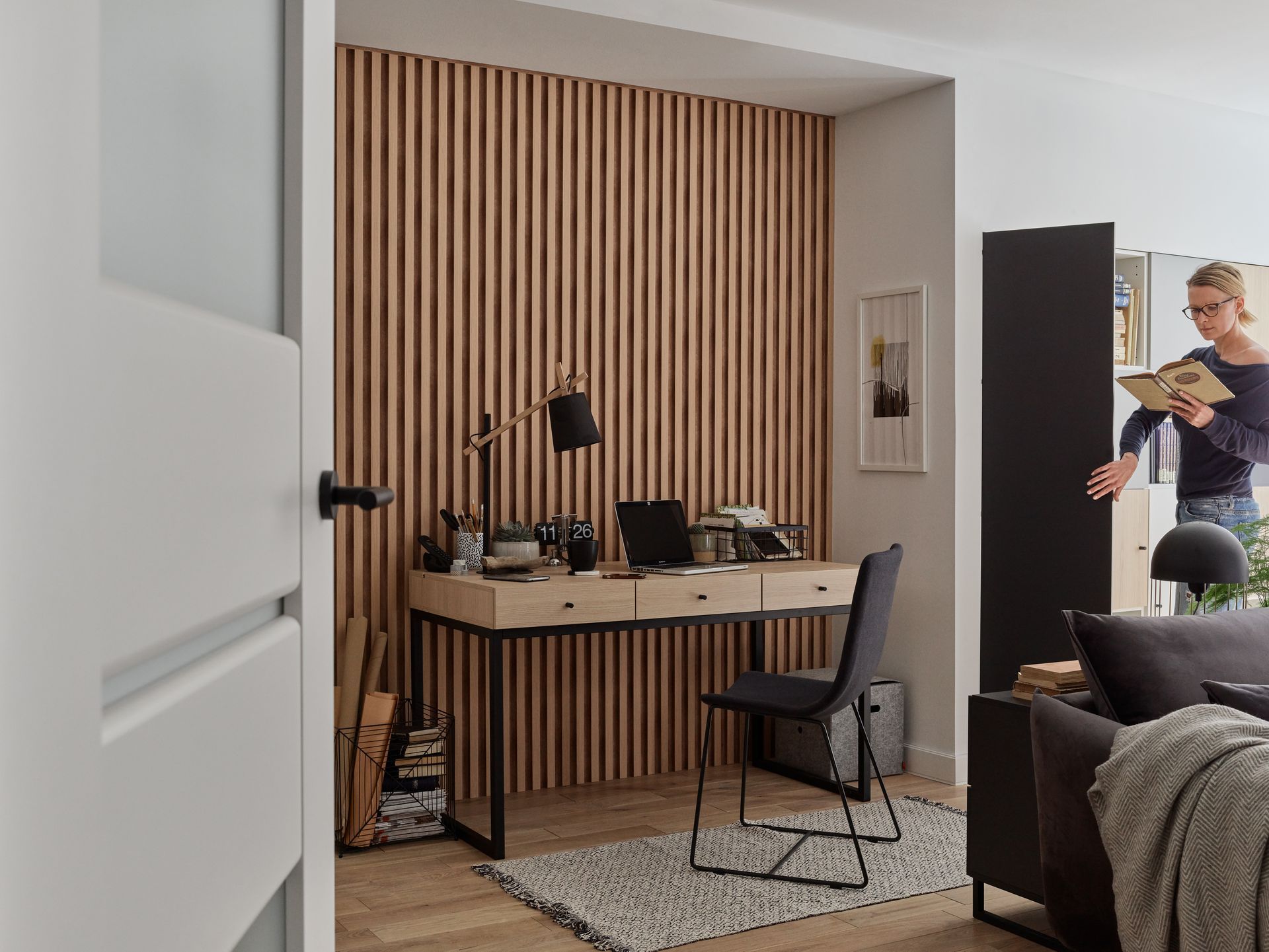Panele można zamontować pionowo, poziomo lub na ukos. Na charakter ściany decydujący wpływ ma wybór szczebelków: wąskie w modelu S-Line podkreślą wysokość pomieszczenia, a dodatkowo nie zdominują przestrzeni, dzięki czemu stworzymy wyciszające tło do wypoczynku. Z kolei panele L-Line o szerszych szczebelkach mogą stać się głównym bohaterem wnętrza: zapewniają większą grę świateł oraz widoczne głębsze cienie. Model L-Line doskonale dopasuje się do różnych pomieszczeń, także do domowego biura, w którym rozjaśni wnętrze i wprowadzi harmonię. Panele Linerio są niezwykle łatwe w utrzymaniu. Nie musimy martwić się o zabrudzenia, ponieważ szybko wyczyścimy je wilgotną ściereczką.