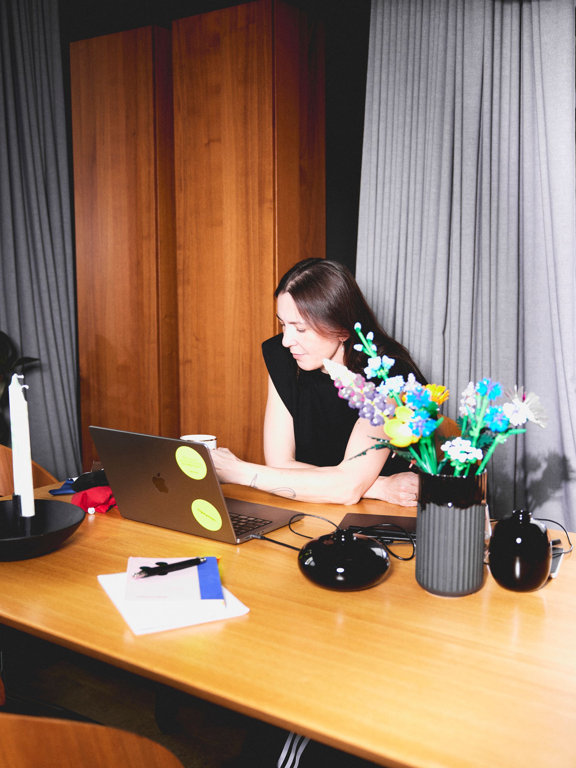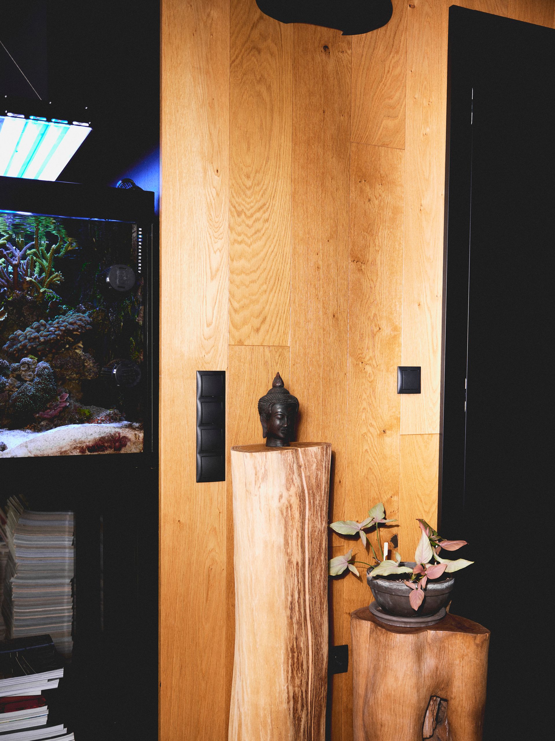 Produkują także wielokrotnie nagradzaną kraftową wódkę o zagadkowej nazwie Tvigwychsin. Oboje urodzili się i wychowali na Mokotowie, ale przenieśli swoje życie do warszawskiej Radości, by zamieszkać blisko lasu i mieć gromadkę psów. Aldona, którą trudno zobaczyć w innym kolorze niż czerń, w domu otacza się kolorem, chociaż elementy stanowiące o bazie wnętrza, jak ulubiony kominek Focus, są oczywiście czarne. Odwiedziliśmy ją.