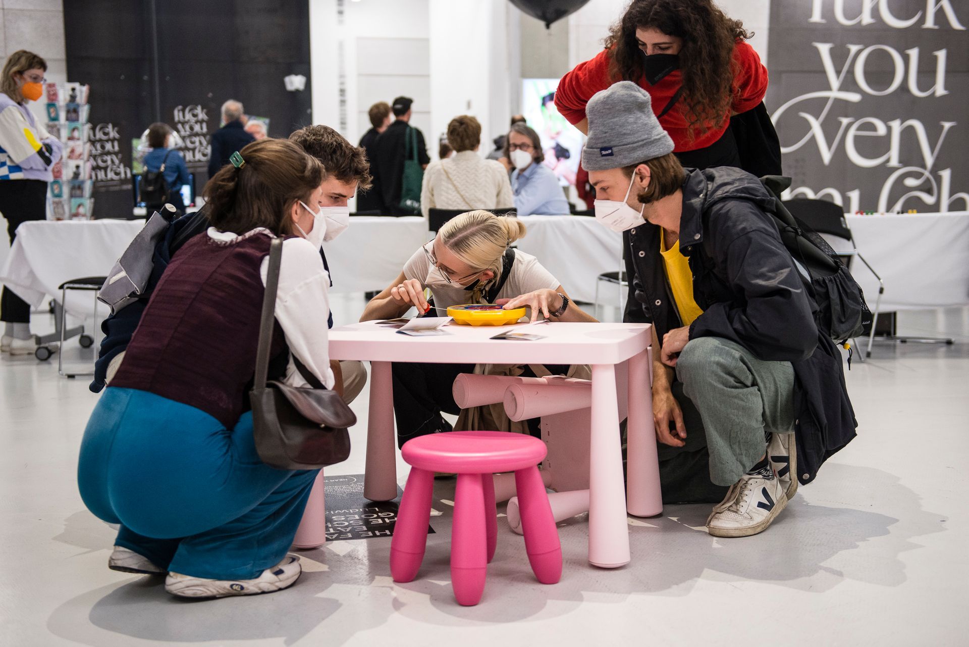 To, co przykuło moją uwagę to „The Artisans of Public Psyche” autorstwa Maxa Scheidla, który znalazł się w samym centrum miasteczka festiwalowego. Wyróżniała go przede wszystkim oryginalna konwencja. Projekt zapraszał zwiedzających gości do odpowiedzi na pytania: „Co cię teraz denerwuje?”, „Co mogłoby pomóc twojej psychice?”, „Kiedy ostatnio powiedziałeś coś miłego do obcej osoby?” – a to wszystko za pomocą zabawnych narzędzi komunikacyjnych. Uczestnicy ochoczo dzielili się przyjemnymi i mniej przyjemnymi doświadczeniami. Projekt dotyczył stygmatyzacji stresu psychicznego w czasie pandemii.