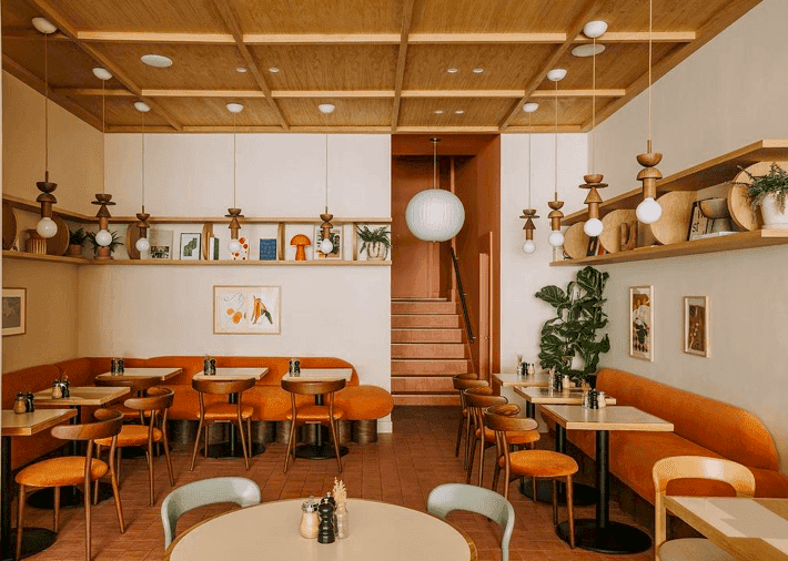 BEAM Cafe znajdująca się w Nothing Hill w Londynie, to trzecia lokalizacja wielokrotnie nagradzanego lokalu. Jest to połączenie nowoczesności ze stylem mid-century modern. Studio Oli Jachymiak zostało zaangażowane do jej zaprojektowania. Zadanie nie było łatwe ze względu na kształt budynku w środku: jest to długa i wąska przestrzeń z ograniczonym dostępem do światła dziennego. Ola i jej zespół postawili na delikatne, neutralne kolory. Różnorodność odcieni użytych materiałów podkreśla ten styl i jest świetnym tłem dla zagospodarowanej przestrzeni. Architektka wykorzystała stare przedmioty w połączeni z nowymi, dzięki czemu w pomieszczeniu wytworzył się nadzwyczajny klimat. Klientom zależało na tym, aby było to ciepłe, przytulne oraz stylowe wnętrze, które przyciągnie klientów. Kawiarnia podzielona została na trzy części.