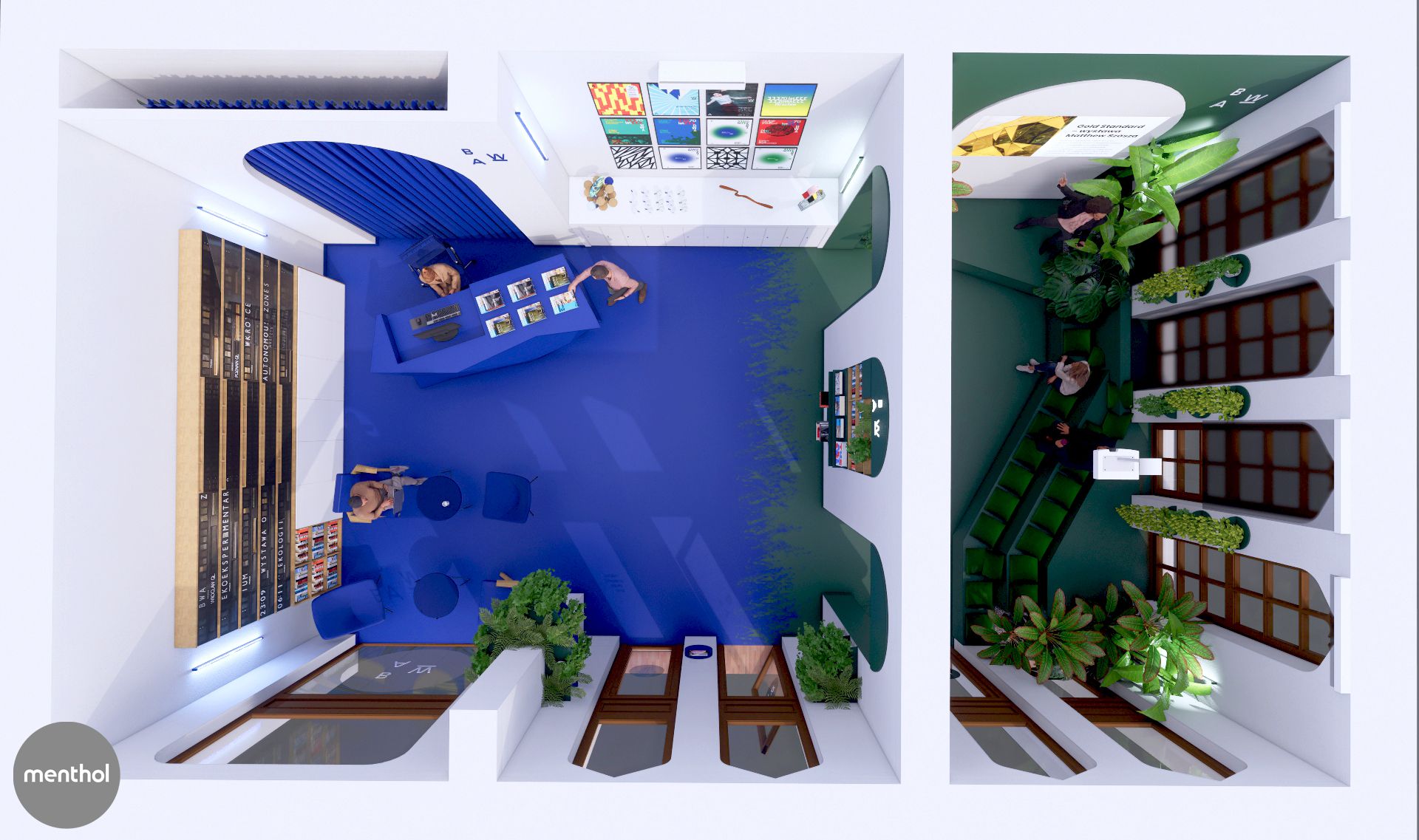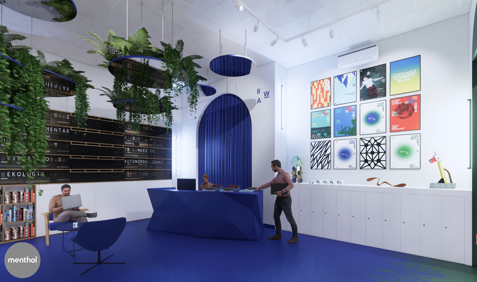 Projekt wykonała grupa Menthol Architects, a zaproponowana przez nią kolorystyka nawiązuje do przestrzeni dworca oraz identyfikacji wizualnej obchodów 70-lecia BWA Wrocław. Kolor zielony odnosi się do przeszkleń znajdujących się w hali głównej, natomiast indygo wydobyto z koloru ścian Sali Secesyjnej, mieszczącej się tuż obok galerii.