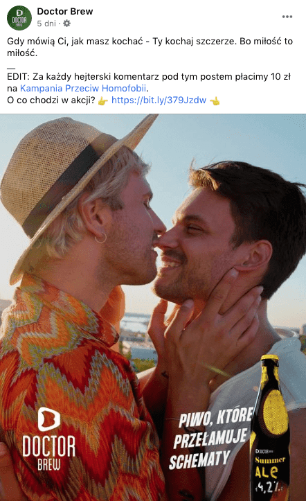 Para gejów w reklamie piwa. Za każdy hejterski komentarz marka przeznacza 10 zł na Kampanię Przeciw Homofobii
