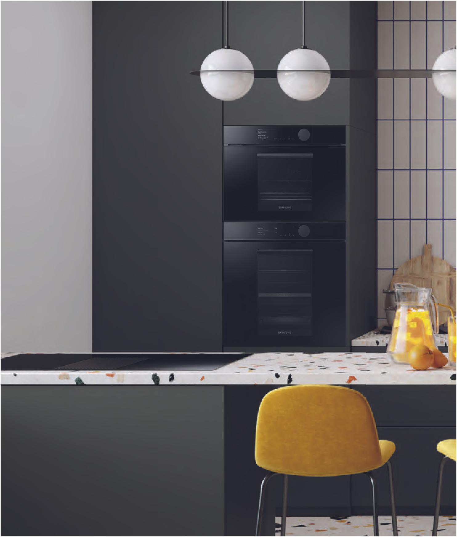 Piekarniki Infinite Line™ doskonale komponują się z pozostałymi urządzenia i elementami należącymi do linii urządzeń do zabudowy Samsung Infinite Line™, tworząc spójną linię wzorniczą. Świetnym przykładem jest skośny okap, który został zaprojektowany tak, by tworzyć harmonię z pozostałymi urządzeniami. W ofercie znajdują się również stylowa płyta indukcyjna z wbudowanym okapem, zmywarka z trybem cichym czy innowacyjna lodówka Bespoke, pozwalająca na wyrażenie swojego indywidualnego stylu. Jest to możliwe, ponieważ lodówki z serii Bespoke mają możliwość personalizacji. Oznacza to, że możemy samodzielnie dobrać kolor paneli oraz materiał, z którego są wykonane. A wybór jest naprawdę duży.