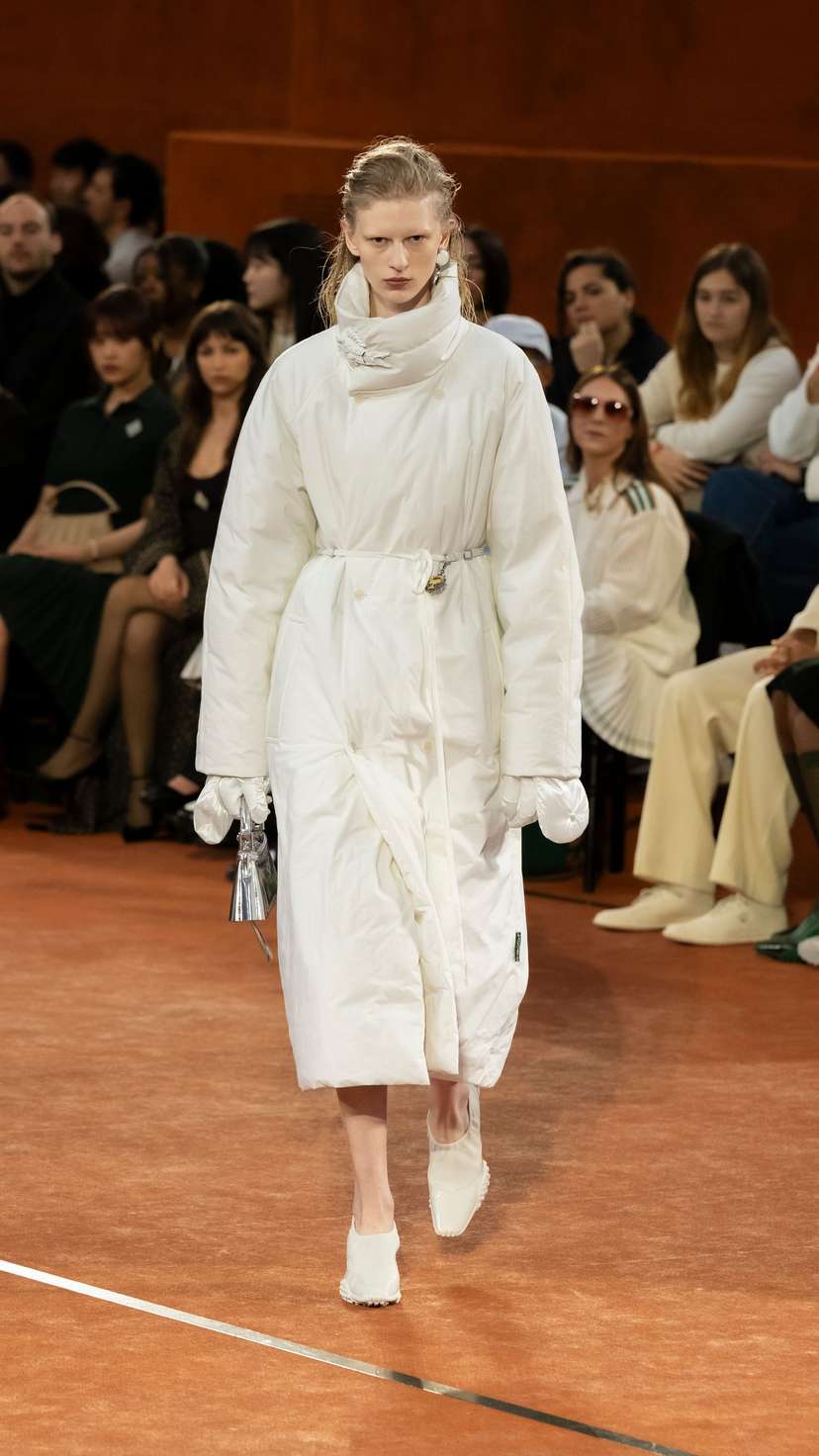 Luksusowe płaszcze wełniane, nowoczesne trencze z technologiczną membraną oraz eleganckie dresy podkreślają mariaż komfortu z wyrafinowaniem. W kolekcji znalazły się także reinterpretacje nazwiska René Lacoste w formie elementów graficznych oraz haftowane emblematy inspirowane medalionami turniejowymi z archiwów założyciela marki.