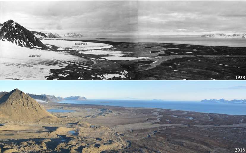 Lód znika na naszych oczach. Naukowcy ze Stacji Polarnej UMK zestawili zdjęcie lodowców Kaffioyry sprzed 80 lat z aktualnymi fotografiami wykonanymi w tej samej lokalizacji. Nie jest dobrze. Pokrywa śnieżna topnieje szybciej niż się spodziewano.