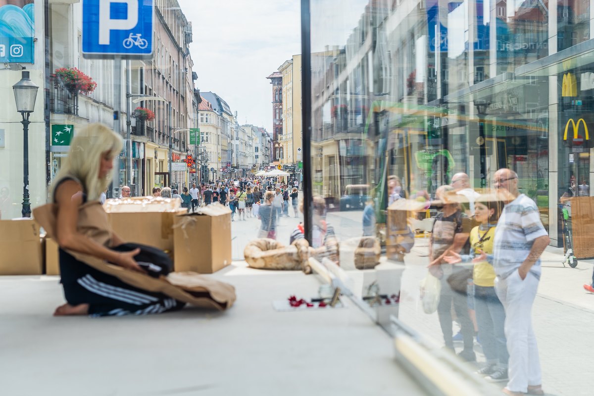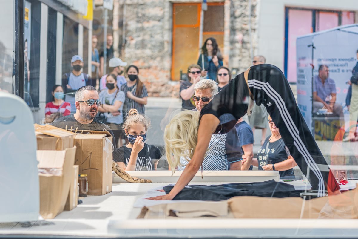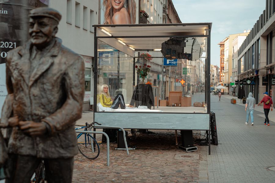 To nie pierwszy raz, kiedy aktorka dała się zamknąć i poddać obserwacji przez szklaną ścianę. Na początku czerwca siedmiokrotnie wystąpiła w performansie „Zapiski z zamknięcia: sztuka handlu-handel sztuką”, gdzie przebywała za witryną sklepową w tyskim centrum handlowym. Był to performance na temat miejsca aktora we współczesnym świecie, a zamknięcie miało nawiązywać do sytuacji w czasie lockdownu. Nie bez powodu występ odbył się w centrum handlowym. W czasie pandemii zarówno działanie kulturalne, jak i handel zostały zawieszone, a ludzie pracujący w tych sektorach stracili źródło utrzymania. Kolejne odsłony projektu opowiadały o takich kwestiach, jak wartość ludzkiego życia, tradycji, bycia sobą, przyjemności i młodości.