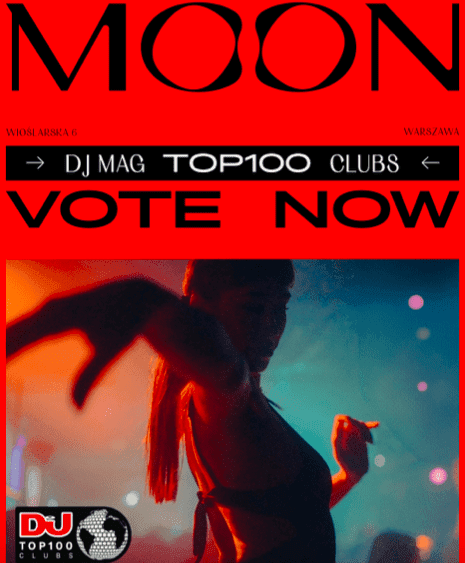 Do rankingu 100 najlepszych klubów 2025 roku nominację otrzymał warszawski klub MOON, który znajduje się przy ul. Wioślarskiej 6. Teraz już wszystko zależy od głosów internautów – głosy na klub MOON możecie oddawać TUTAJ aż do 12 marca. Wyniki zostaną ogłoszone w kwietniu 2025 na profilach DJ Magazine w mediach społecznościowych.