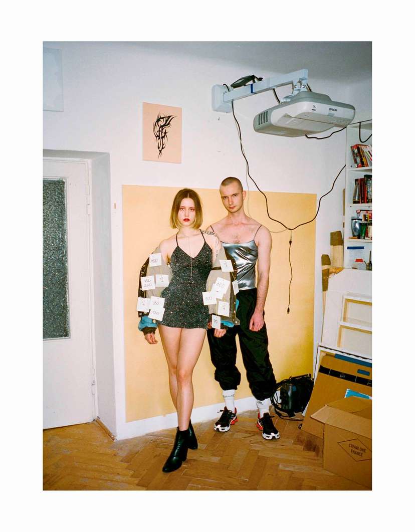 W Polskim Raju podział na damskie i męskie jest zabawą, nie ma tu też problemów z nadprodukcją ubrań. Kurtki „Szary wąż” i „Dąb Bartek”, bluza „Wiersz o frytkach”, topy „Instagramerki Cocomo” i „Rave”, koszula „Odblaskowy duszek”, sukienka „Elegancja” czy spódnica „Ikea” to ubrania z drugiej ręki, którym nadano nowe, poetyckie, multipłciowe życie. Polskiparadise.com tworzą Milena Liebe i Konrad Mizera.