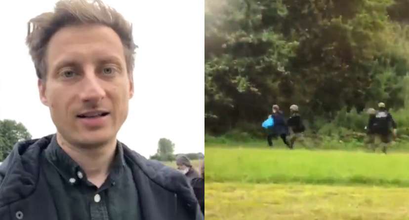 Do internetu trafiło nagranie współpracownika OKO.press Igora Nazaruka, na którym poseł Sterczewski biegnie w kierunku obozu i jest ścigany przez funkcjonariuszy Straży Granicznej.