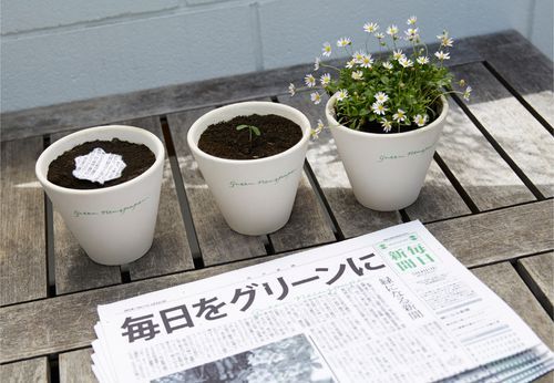 Za nowatorskim eko-pomysłem wydawniczym stoi agencja marketingowa Dentsu Inc, która współpracuje z japońskim dziennikiem „The Mainichi”. Firma wydała „Zieloną Gazetę”, która została wydrukowana tuszem roślinnym na w pełni biodegradowalnym papierze. Co więcej, papie ten zawiera nasiona, z których po „posadzeniu gazety” mają wyrosnąć rośliny. Autor poinstruował czytelników, że po przeczytaniu czasopisma mają porwać je na strzępy, posadzić w ziemi i podlewać tak, jak zwyczajną roślinę.
