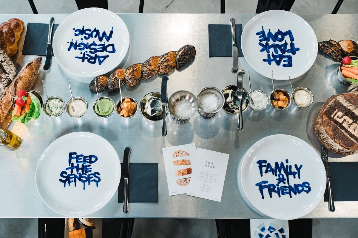 Artystyczny wymiar eventu wziął na siebie kolektyw Glitch Lab – kolektyw inspirujących osobowości obserwujących szybko zmieniające się otoczenie, tworzony przez Arkadiusza Szweda, Martę Łempicką i Jagodę Harton. Ich projekty łamią tematy rozumiane jako tabu, hakują rzeczywistość i surfują na granicach różnych dyscyplin. Tym razem przygotowali serię ręcznie projektowanych talerzy z hasłami nawiązującymi do motywu przewodniego śniadania. Każdy gość zabrał jeden znich do domu. Był to fragment wspólnego doświadczenia przeniesiony w codzienność. Dobry pomysł, wykonany z poczuciem, że forma i treść muszą sobie odpowiadać.