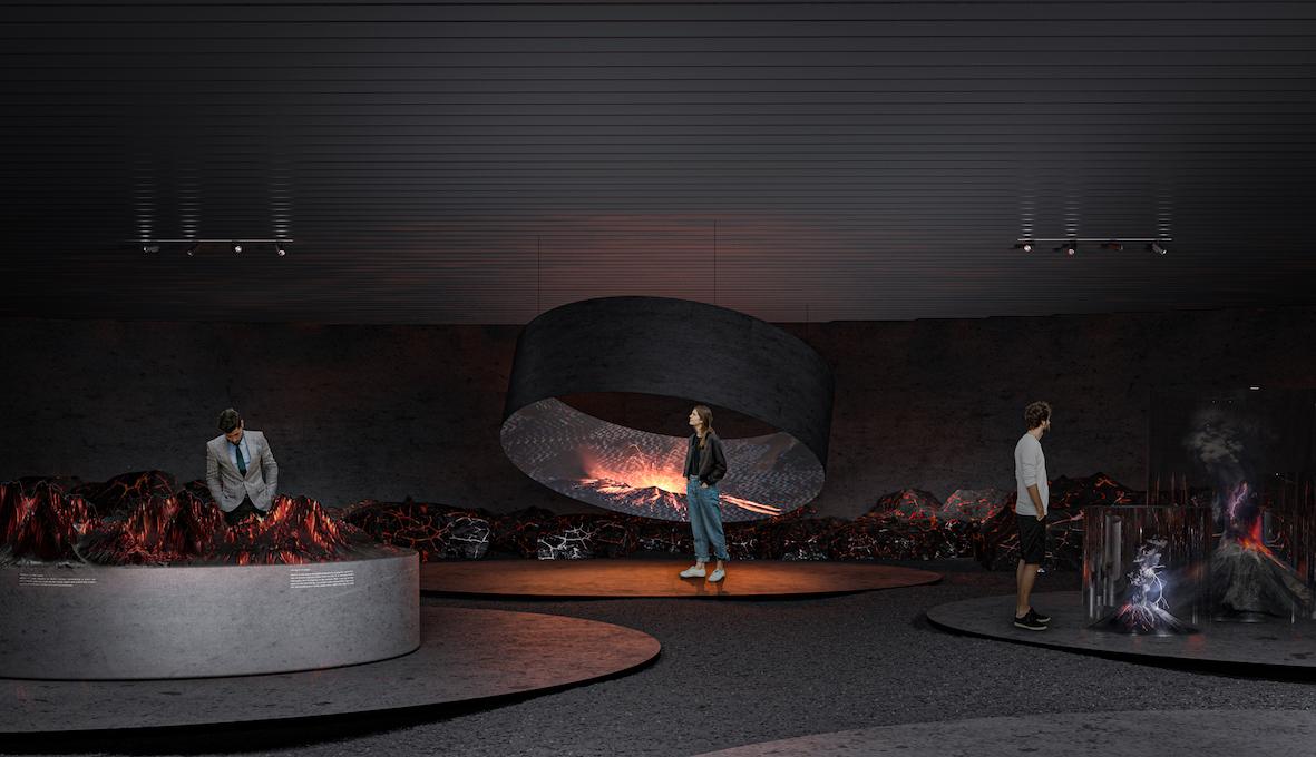 Intencją projektową było wskazanie na uczucia związane z nieobliczalną mocą przyrody i spotęgowanie ich przez rozwiązania architektoniczne. Zwiedzający rozpoczynalibyswą wycieczkę od przejścia podziemną rampą, łączącą parking z głównym wejściem do muzeum. Trakt pieszy na głównej osiwskazywałbyna wulkan. Taka kompozycja przestrzenna kadruje widok i doskonalepodkreślałabybardzo interesujący związek między bryłą muzeum a jego otoczeniem. Pod ziemią, w strefie wejściowej, znajdowałby się hol, szatnia, sklep z pamiątkami i kawiarnia. Główna sala wystawiennicza zajmowałaby nieregularną bryłę budynku. Zwiedzanie kończyłoby się na platformie widokowej na dachu budynku, która doskonale podkreślałaby kontrast między wrażeniem przebywania pod ziemią, które towarzyszyłoby zwiedzaniu sali ekspozycyjnej, a bezkresnym krajobrazem islandzkich równin.