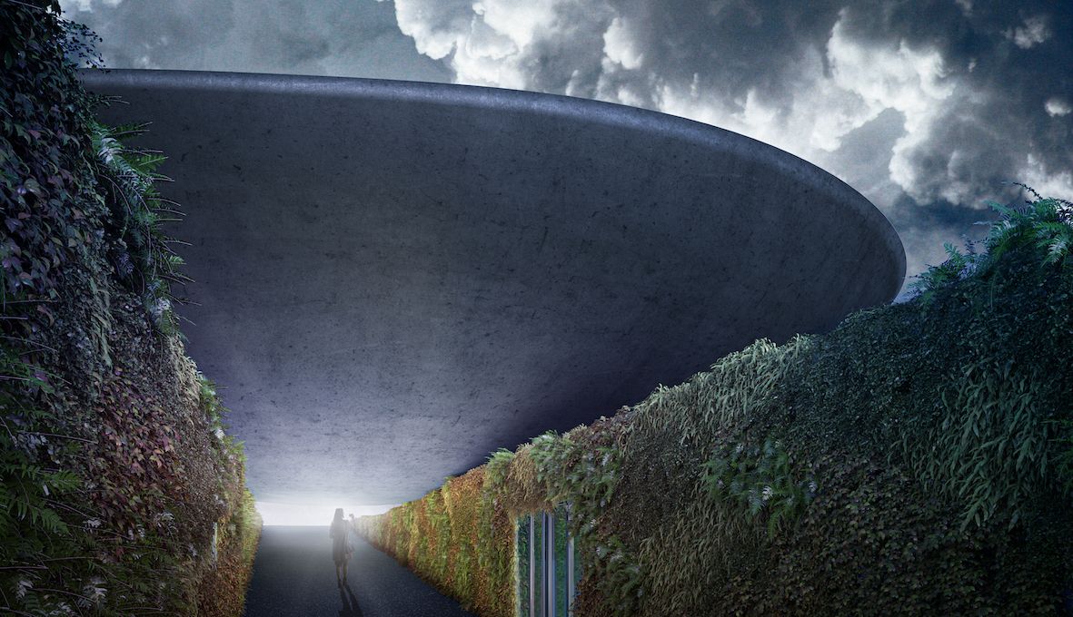 Architekci zaproponowali, by główna bryła budynku widoczna ponad poziomem terenu powstała w wyniku odlania wnętrza krateru. Oś utworzona między wulkanem, budynkiem i punktem obserwacyjnym tworzyłaby wtedy iluzję perspektywy – budynek i wulkan doskonale by się uzupełniały.
