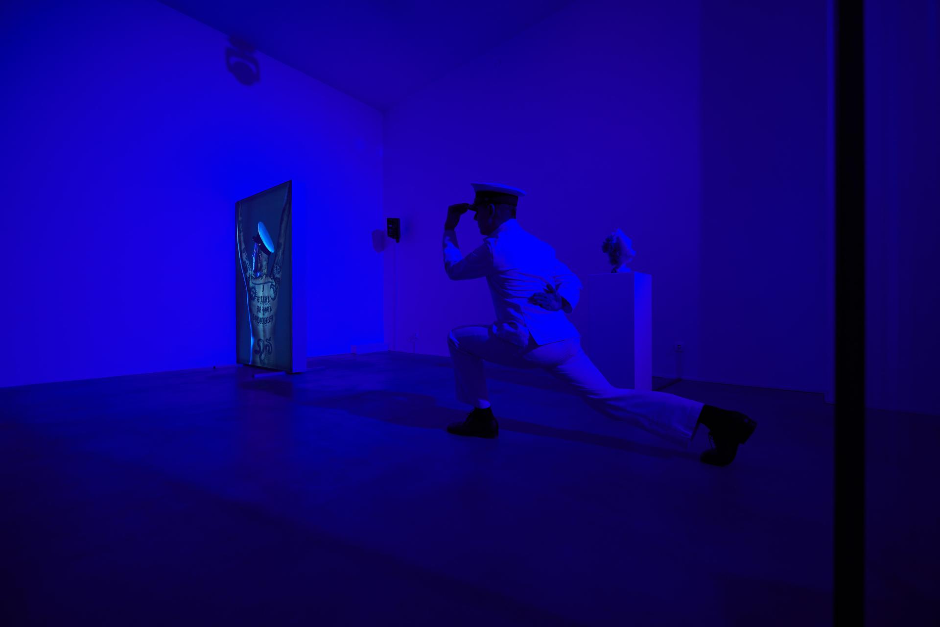 W swoim projekcie nie dotknąłem tematu marynarza jako zawodu. Zająłem się budowaniem tożsamości, która przeminęła. Marynarz to obecnie zupełnie inna figura wizualna niż choćby na początku XX wieku. W drugiej sali Gdańskiej Galerii Miejskiej pokazuję wideo ze zmistyfikowaną podróżą statkiem. Kiedy zacząłem pracować nad tym filmem, kwestią oczywistą było to, by odbyć rejs z Europy na Karaiby, ale artyście takiemu jak ja ciężko by to było sfinansować. Bardziej interesująca z punktu widzenia współczesnych problemów okazała podróż ekonomiczna, z której korzystają emigranci zarobkowi płynący do Szwecji. Skoro nie mam pieniędzy na podróż statkiem na Karaiby, postanowiłem skorzystać ze Steny Line. Wizualnie podróż przez Ocean Atlantycki mogłaby wyglądać tak samo, jak przez Morze Bałtyckie. W żadnym kadrze mojego filmu nie widać, że to okręt Steny Line. By uprawdopodobnić mistyfikację, w swojej kajucie rozkręciłem ramy i standardowe grafiki przewoźnika podmieniłem na kopie zdjęć marynarza. To hakowanie systemu na subtelnym poziomie. Na początku wideo zresztą podaję, w których kajutach płynąłem - być może ktoś będzie chciał podążyć tym śladem.