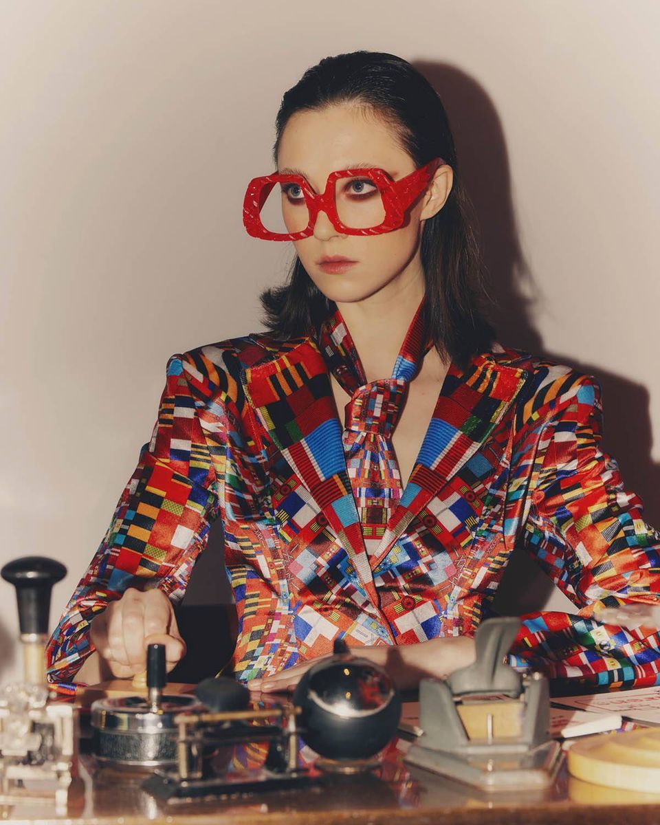Nie moglibyśmy komentować tej epoki bez jej ciemnej strony. Czarnym charakterem kolekcji jest sylwetka »Dyktatora«. Demoniczny, taliowany żakiet z ostrymi klapami i ołówkowa spódnica uszyte zostały z aksamitu prześmiewczo zadrukowanego w wirujące baretki z dziesiątek odznaczeń generała Wojciecha Jaruzelskiego. Na zdjęciach w kampanii Dyktator zapowiada stan wojenny, »operację pokojową«, a może mówi o prawach kobiet?"