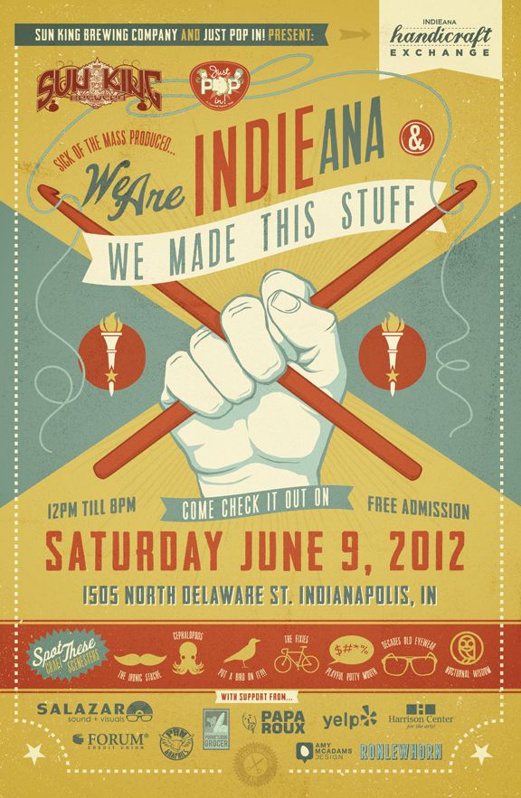 Inną wymowną próbkę takiego podejścia stanowi plakat targów indieAna Handicraft Exchange z 2012 roku, będący sugestywną kompozycją, której centralną część stanowi dłoń – mocno zaciśnięta na drutach służących do szycia. Trudno w bardziej dosadny sposób wyrazić przewagę pracy ludzkich rąk nad masową produkcją.