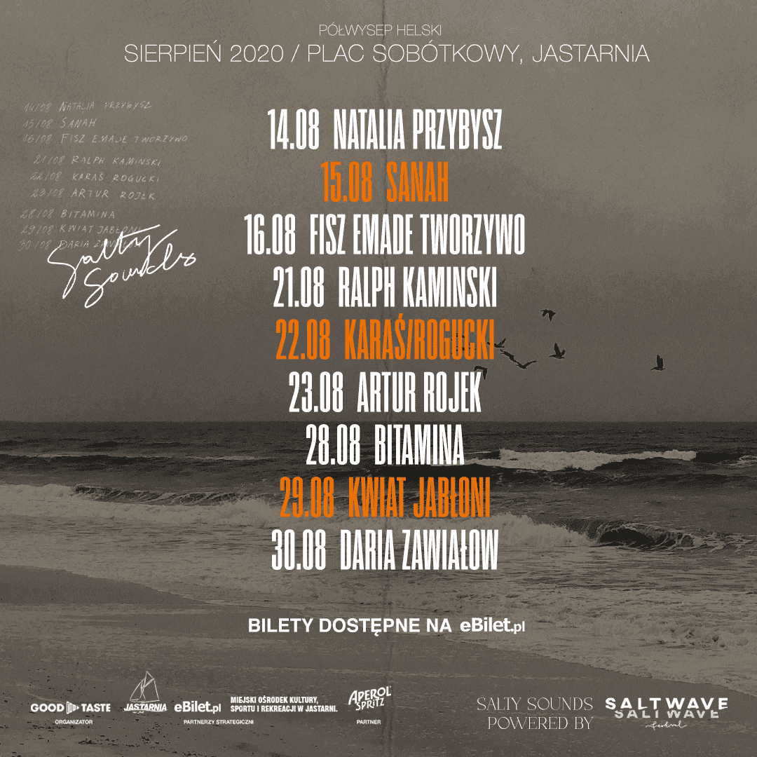 Nie wszystko stracone: jeśli w tym dziwnym 2020 roku tęsknicie za festiwalowym klimatem, mamy dla was ciekawą alternatywę! Już 14 sierpnia rusza nowy cykl letnich koncertów na pięknym Półwyspie Helskim! Salty Sounds to siostrzany projekt Salt Wave Festivalu, który powstał z tęsknoty za muzyką na żywo. Odwołane festiwale, koncerty, utrudnione podróże – wszyscy to znamy z codzienności, dlatego na Salty Sounds nie może nas zabraknąć. Koncerty będą się odbywały w weekendy od 14 do 30 sierpnia na Placu Sobótkowym w słonecznej Jastarni.