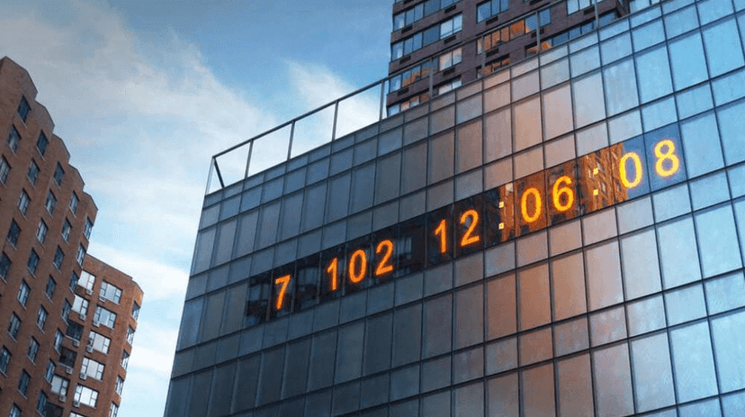 Od 20 lat Metronome jest jedną z najbardziej rozpoznawalnych instalacji artystycznych w Nowym Jorku. Jej autorami jest para artystów Kristin Jones i Andrew Ginzel. Piętnastocyfrowy cyfrowy zegar elektroniczny o szerokości prawie 19 metrów, odmierza czas w bardzo dokładny sposób – pokazuje godziny, minuty, sekundy i ich ułamki. Z dniem 19 września zaczął służyć ekologicznej misji. Twórcy, Gan Golan i Andrew Boyd stworzyli instalację, by poruszyć ludzkie sumienie i zapobiec nieodwracalnym skutkom globalnego ocieplenia. Zostało nam nieco ponad 7 lat. Jeżeli w ciągu tego czasu nie zostaną podjęte konkretne działania, które zminimalizują skutki katastrofy klimatycznej, Ziemia znajdzie się w punkcie, w którym zmian nie będzie można cofnąć.