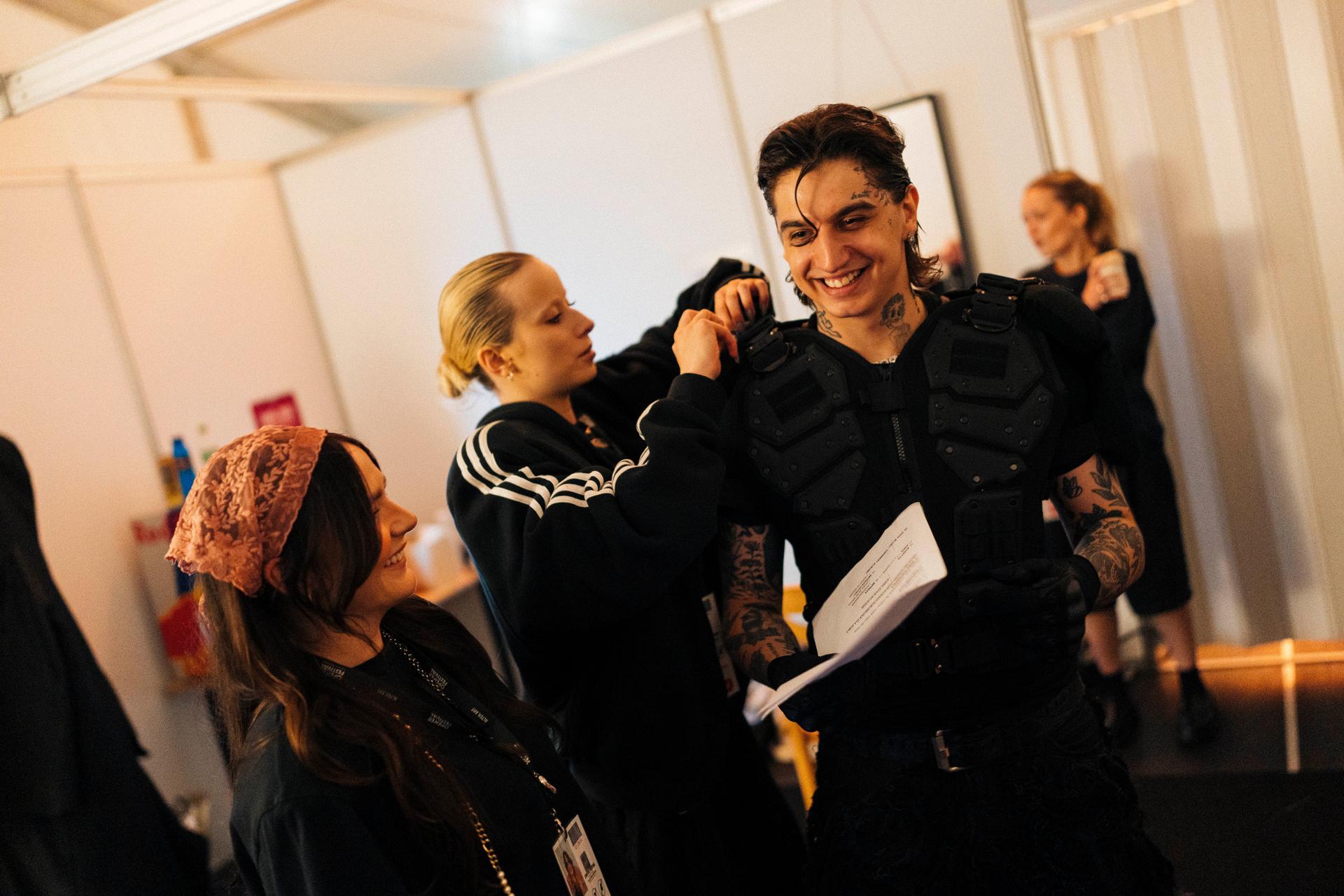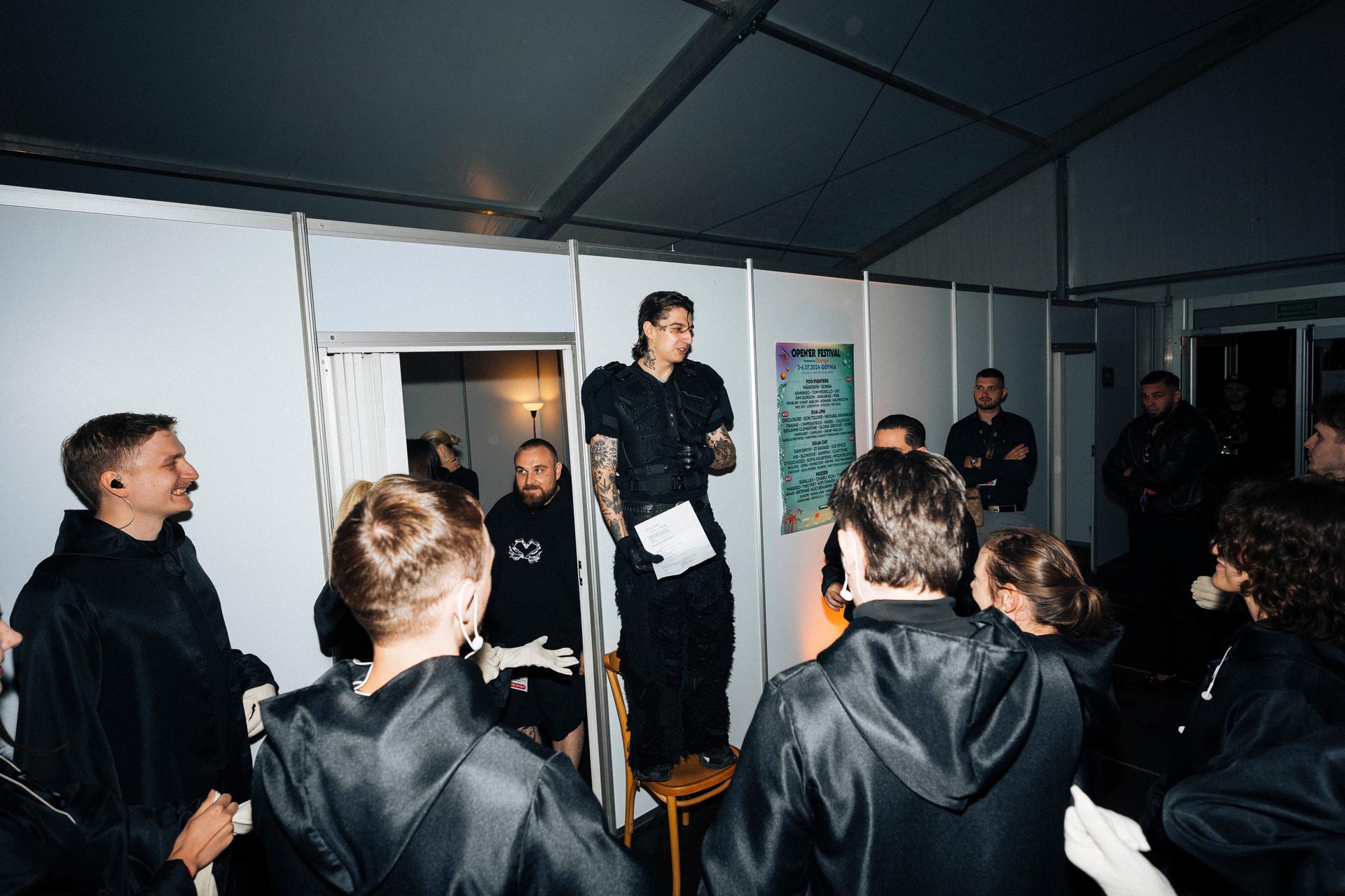 Chwilę przed północą garderoba Sobla wypełniła się ludźmi. W jego otoczeniu nie ma nikogo przypadkowego. Najbliższą część teamu artysty stanowią bliscy z jego rodzinnego miasta — Świdnicy. Z pozostałymi pracuje od lat. Te chwile przed koncertem poświęca na ostatnie szlify i domknięcie swojej roli. Poprawki włosów, przebranie w stylizację — w przypadku tej trasy naprawdę trudną i ciężką do ogarnięcia na scenie — studiowanie set listy, ułożenie listy tematów, które chce na scenie poruszyć. A w trakcie show Sobel jest prawdziwą gadułą i z łatwością przychodzi mu kontakt z fanami. W ostatnich minutach przed koncertem, gdy wszyscy gromadzili się już przy wyjściu, chwycił krzesło, na którym stanął, żeby powiedzieć jeszcze coś od siebie. Przypomnieć kilka kwestii, podbudować, podziękować. „To wasze zaangażowanie popycha mnie do tworzenia lepszych rzeczy” — zwrócił się do zespołu.