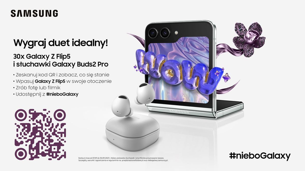 6. Autorzy najbardziej kreatywnych prac opublikowanych w ramach wyzwania zostaną nagrodzeni jednym z 30 zestawów składających się ze smartfonu Galaxy Z Flip5 i słuchawek Galaxy Buds2 Pro.