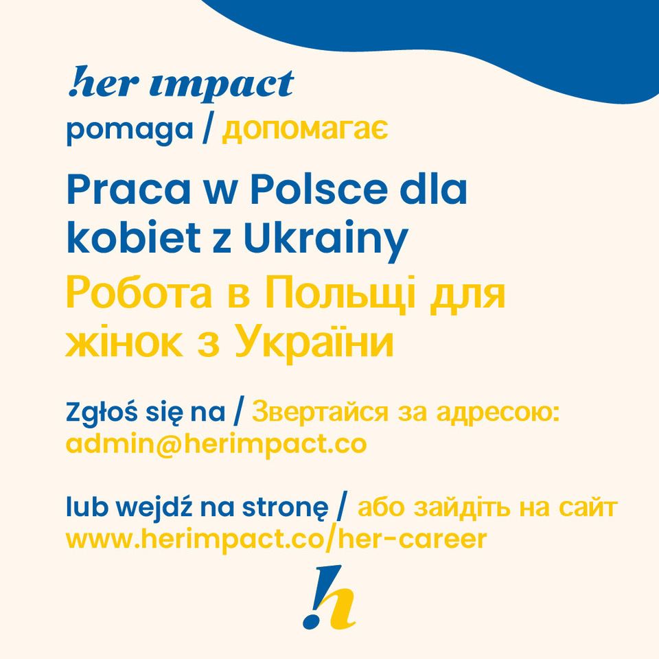 Mówią, że choć ich działania zawsze skupiają się głównie na pomocy kobietom, pomogą każdej osobie która będzie tego potrzebować. Zapraszają do biura przy ulicy Brackiej 3 w Warszawie oraz zachęcają do kontaktu mailowego Obywateli Ukrainy poszukujących pracy oraz przedsiębiorców chcących zatrudnić Ukraińców. Adres: admin@herimpact.co.