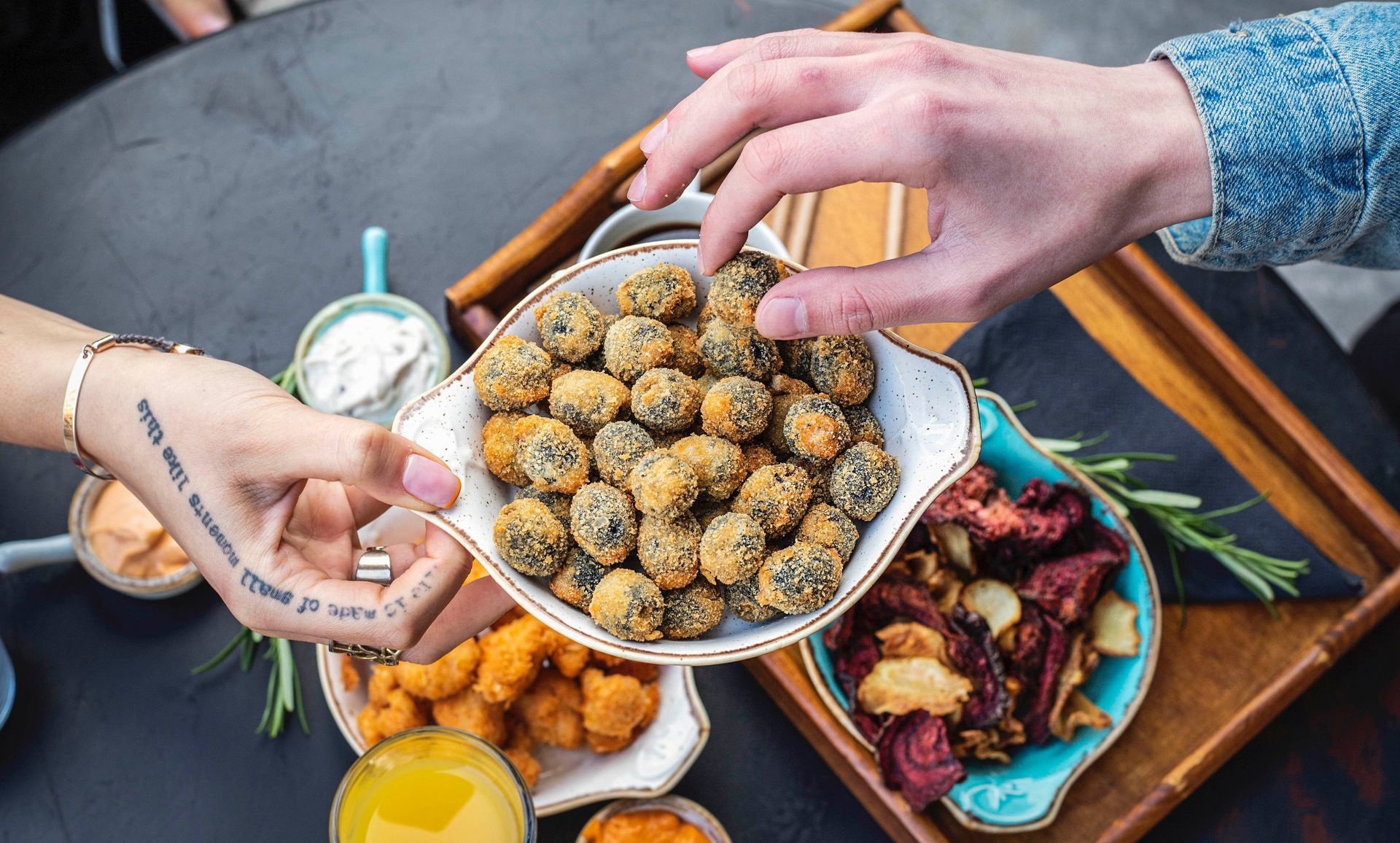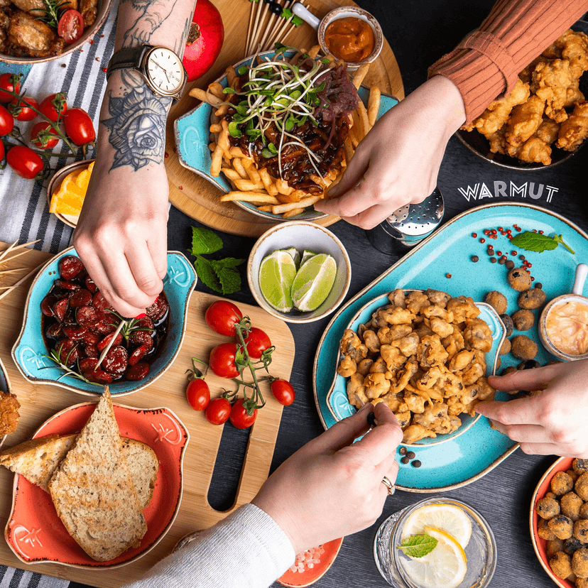 Jak przystało na specjalistów od śródziemnomorskiej kuchni, w karcie pojawił się zestaw „Set prosto z morza" składający się z kalmarów w tempurze, dorsza w panko, małży w tempurze oraz chipsów z wakame. Propozycja dla wyznawców teorii, że „obiad bez mięsa to nie obiad", to zestaw „Konkretny set" – mini corn-dogi z frankfurterką, skrzydełka z kurczaka, chorizo karmelizowane w wermucie oraz frytki. Miłośnikom kuchni roślinnej do gustu powinien przypaść „Set roślinny", czyli zestaw złożony z kalafiorków w panko, frytek z batatów, panierowanych oliwek i karmelizowanych karczochów w białym wermucie z kaparami, rozmarynem i chili. Zbyt wymyślnie? Warmut troszczy się również o fanów bardziej tradycyjnych smaków. Na wynos zamówimy na przykład pysznego kotleta de volaille. W przygotowaniu są również inne pozycje, które będą nawiązywały do uwielbianych klasyków.