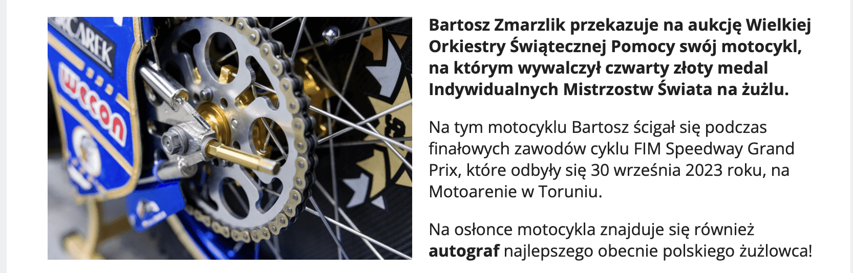 Bartosz Zmarzlik dla WOŚP: mistrzowski motocykl