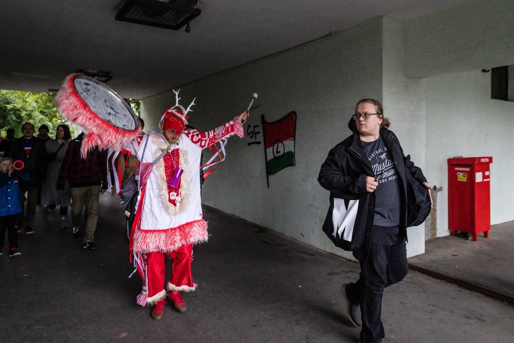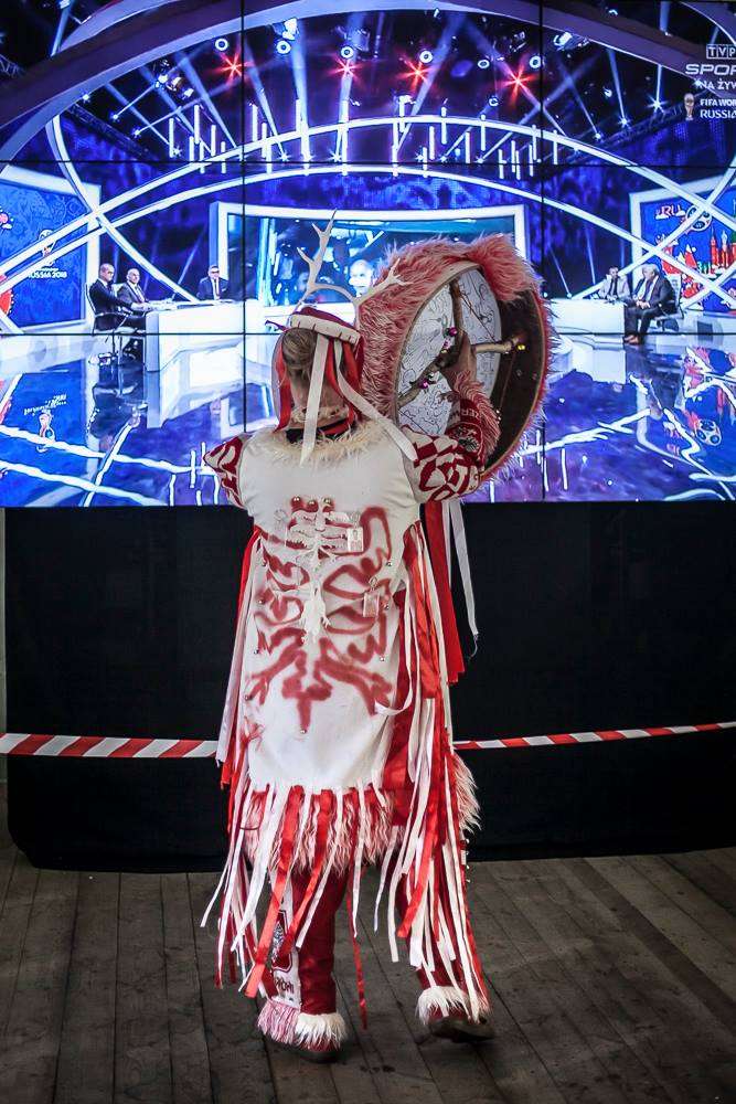 No tak, takie połączenie wizualne powstało w zasadzie samo – kicz piłkarski dopełniły motywy narodowe, mające tutaj swoją symbolikę poza kontekstem Polski. Biel i czerwień pojawiają się jako barwy inicjacyjne w wielu grupach etnicznych na całym świecie, także w szamanizmie. Zarówno to połączenie kolorystyczne, jak i symbol orła łączą tę kreację z Syberią i jej mitologią.