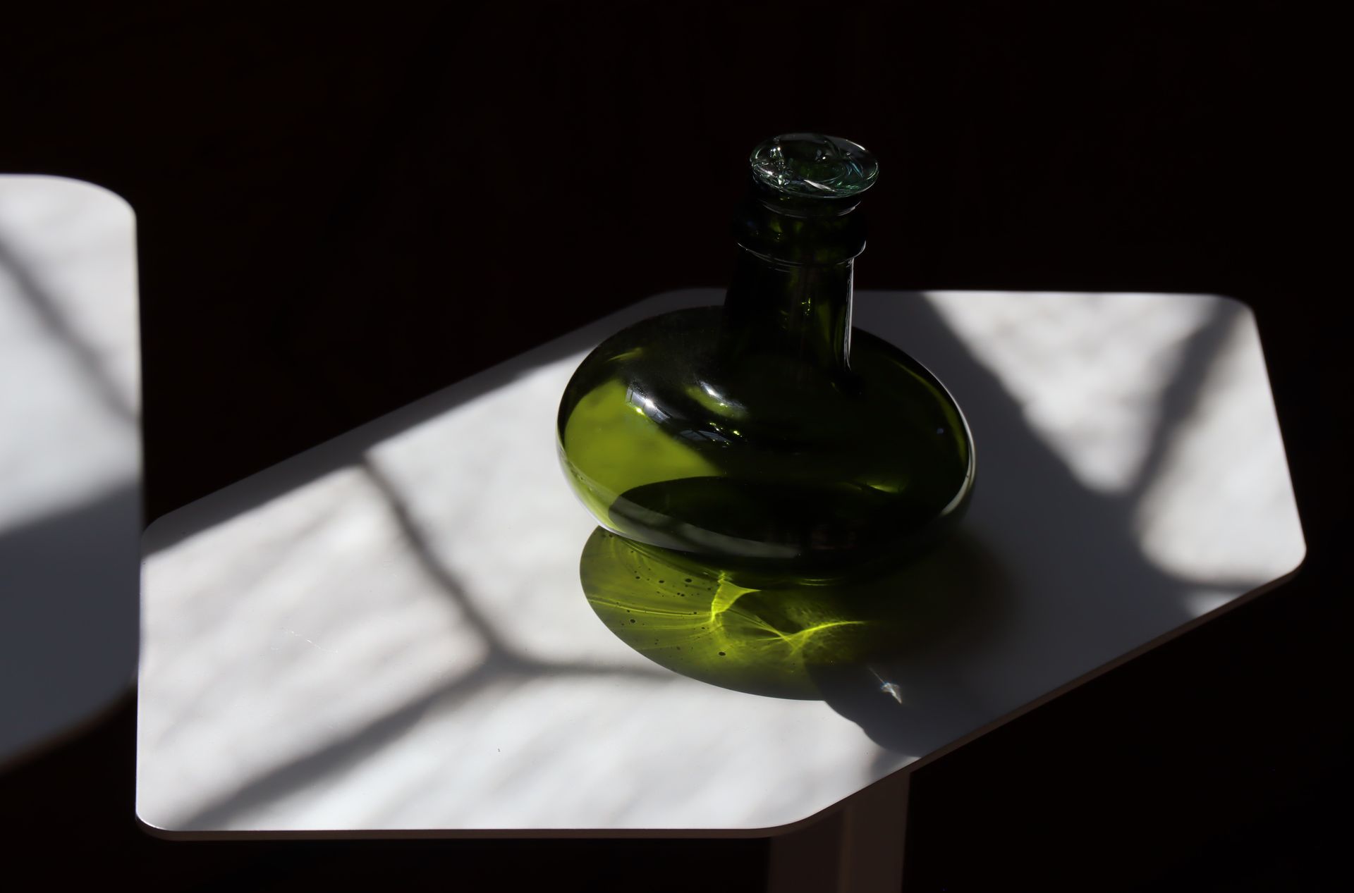 „Skupiamy się na materiale, jego właściwościach i tym, co pozwala osiągnąć. To interesuje nas bardziej, niż produkt, który szkło przechowuje lub w sobie mieści. Fascynuje nas historyczny aspekt butelek. Odniosłyśmy to do ery sprzed industrializacji, sprzed standaryzowania, kiedy szkło i jego proces był bardzo daleko od uniwersalnych norm, a stawał się celebracją unikalności”” opowiedziała nam Aleksandra.