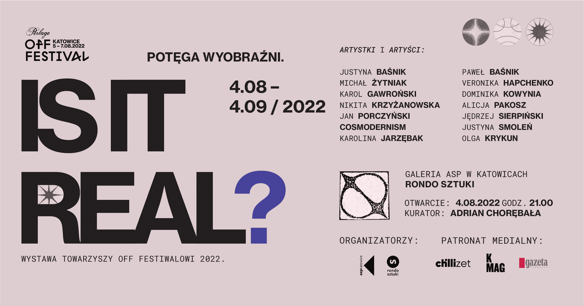 „IS IT REAL?” to wystawa grupowa piętnastu artystów i artystek z Polski i Czech poświęcona sztuce muzyki. Twórcy prac próbują odpowiedzieć na pytanie „Czy aby na pewno to, co nazywamy rzeczywistością jest w pełni realne?”. Wystawa zabiera nas w świat surrealizmu, wolności, szaleństwa i abstrakcji.