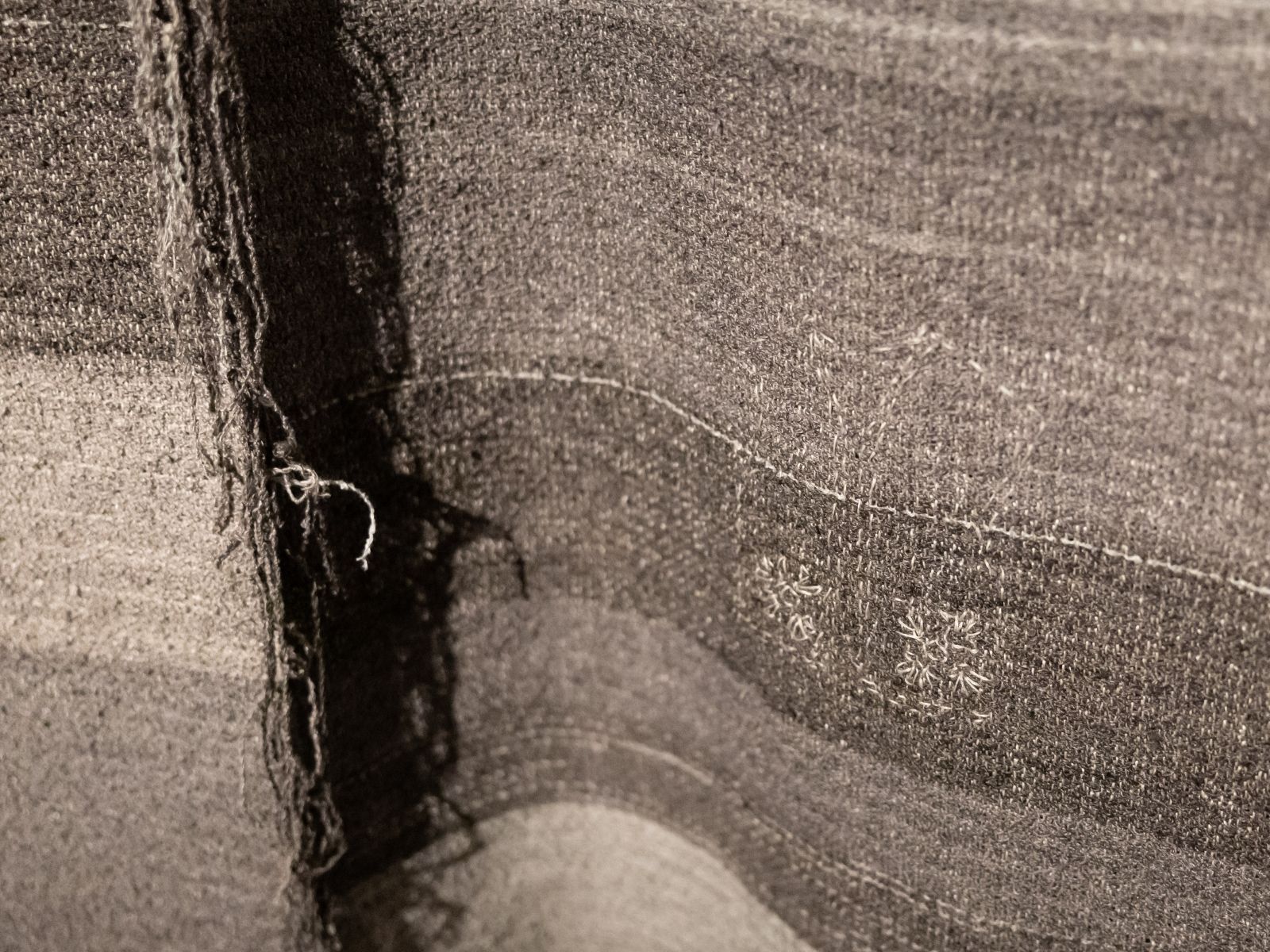 Tkanina została utkana ręcznie na krośnie nicielnicowym przez Beatę Wietrzyńską, mistrzynię tkacką. Poruszając się uważnie wzdłuż instalacji, można dostrzec niewielkie hafty przedstawiające przedmioty-artefakty prezentowane w dalszej części wystawy: walizkę, lalkę, ubranie. To osobiste pamiątki bohaterów niosące ich wspomnienia i ich historie. Zawieszona na metalowym stelażu tkanina wprowadza odbiorców do pierwszej przestrzeni wystawy tworząc jej prolog: jednocześnie wycisza i budzi emocje związane z tematem tej ekspozycji.