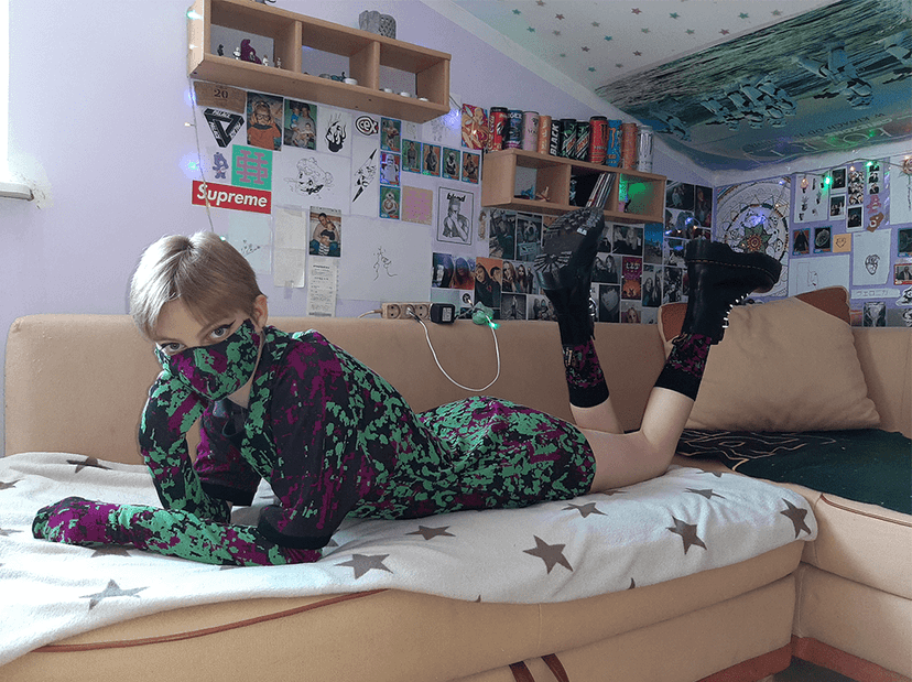 Zuza: "Zdjęcia robiliśmy sobie sami, ze względu na trudne warunki, ale potraktowaliśmy to jako świetną zabawę. Kolekcja kojarzy mi się trochę z takim kosmicznym camo. Jak się ubierasz w te rzeczy, to wyglądasz jak z innej planety i tak też patrzą na ciebie ludzie - na księżycu na pewno nikt by się nie oglądał za nami, jak idziemy we dwójkę cali ubrani w takie same dresy. Sesja była miłą ucieczką od codzienności, taki urlop od pandemii."