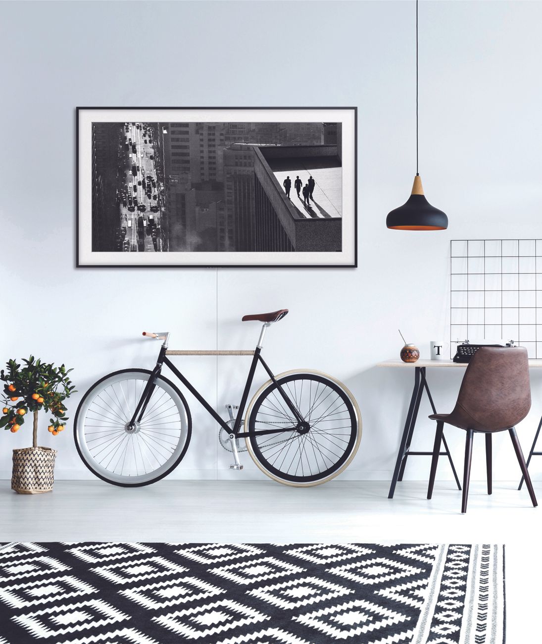 Kiedy już wybierzemy, do zdjęcia lub obrazu możemy dopasować poszczególną ramę. Do wyboru są ramy w następujących kolorach: grafitowa, biała, czarna, orzechowa i beżowa. Wrażenia estetyczne potęguje również Uchwyt Przylegający, dostarczany w zestawie z telewizorem. Dzięki niemu można powiesić telewizor The Frame płasko przy samej ścianie i wyeksponować go niczym kolejny obraz w kolekcji, a połączenie Jednym Prawie Niewidocznym Przewodem pomoże uporządkować przestrzeń wokół ekranu. W ten sposób za pomocą kilku kliknięć nasza ściana zaczyna wyglądać stylowo i szykowanie, zamieniając się w dzieło sztuki.