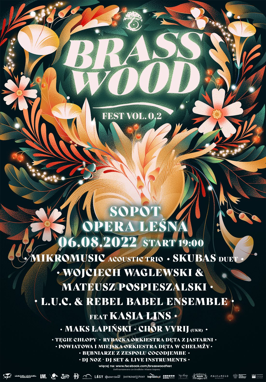 Od 19.00 rozpocznie się koncert, na którym usłyszymy m.in.: Skubasa, duet Waglewski & Pospieszalski, Mikromusic Acoustic Trio, Maksa Łapińskiego w nastrojowych, kameralnych i akustycznych aranżacjach. Koncerty na scenie „Lasów” przeplecione zostaną brassowymi wykonami orkiestr na schodach Opery Leśnej. To jedna z niewielu okazji by usłyszeć zespoły w ich naturalnym brzmieniu. Nie zabraknie też energetycznego koncertu autora BrassWood Fest – Łukasza L.U.C. Rostkowskiego z orkiestrami Rebel Babel Ensemble oraz zaproszonymi solistami. Finałem koncertu będzie set Djski DJ NOZa wraz z instrumentalistami. Na koncert obowiązują bilety, dostępne na stronieebilet.pl.
