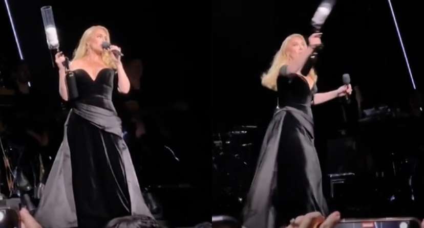 „Zauważyliście, że ostatnio ludzie zapomnieli, jaka etykieta obowiązuje na koncertach? Po prostu rzucają na scenę różne gówna. Widzieliście to? Tylko spróbujcie! Jeśli ktoś odważy się to zrobić, to zabiję” zagroziła Adele, trzymając pistolet do wystrzeliwania gadżetów.