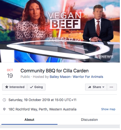 Nie zmniejszyło to oburzenia internautów, którzy stworzyli na Facebooku wydarzenie zatytułowane "Community BBQ for Cilla Carden". W momencie, gdy zostało usunięte, udział zadeklarowało ponad 7 tysięcy osób, a 16 tysięcy wyraziło zainteresowanie uczestnictwem. Twórcy argumentowali, że grillowanie to piękna, australijska tradycja, którą Carden próbuje zniszczyć. Mało tego, obiecali przyjechać na miejsce food truckami i zaparkować nieopodal jej domu.