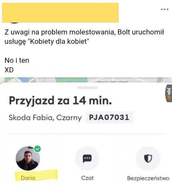 Bolt chcąc zapobiec kolejnym przestępstwom uruchomił linię „Kobiety dla Kobiet", w której to kobiety kierowczynie mają bezpiecznie dowozić pasażerki do wybranej destynacji. W ciagu doby po internecie zaczął krążyć zrzut ekranu z aplikacji, zdobywając szybko miano mema. „Pani" Daria miała twarz dojrzałego mężczyzny.
