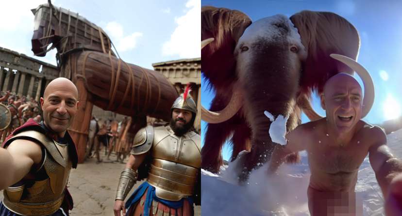 Konto na Twitterze „Stelfie the Time Traveller” zdobyło popularność za sprawą selfies robionych w różnych epokach historycznych. Użytkownik wykorzystał sztuczną inteligencję, by stworzyć dziennik podróży, który na pierwszy rzut oka wydaje się całkiem realistyczny. Na profilu możemy zobaczyć zdjęcia wykonane podczas budowy piramid w Egipcie czy w trakcie ucieczki przed mamutem lub... dinozaurem.