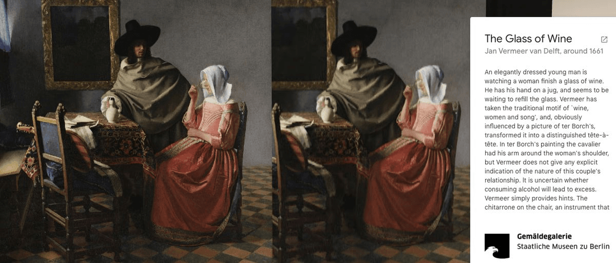 Wystawa „Meet Vermeer” prezentuje całą znaną kolekcję 36 prac artysty, które na co dzień znajdują się w 18 różnych muzeach na całym świecie. Wystawa nie jest internetową wersja trwającej ekspozycji w Amsterdamie – projekt powstał już w 2018 roku, a odpowiedzialne za całość jest wspomniane Muzeum Mauritshuis w Hadze. Wystawa online podzielona jest na kilka tematycznych sal:
