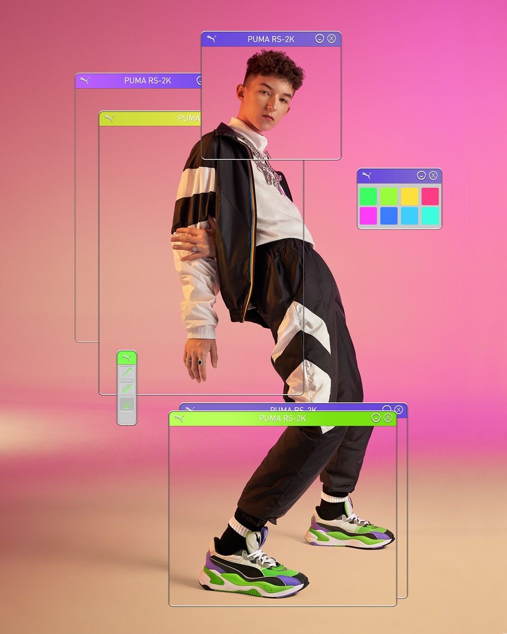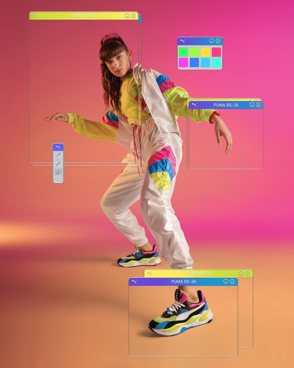 Buty PUMA RS-2K pojawiają się w kampanii, w której ambasadorzy, Viki Gabor oraz Marcin Maciejczak, przenieśli się do czasów pierwszych komunikatorów internetowych. Estetyka materiałów zdjęciowych oraz video mocno nawiązuje do okresu sprzed dwóch dekad – jaskrawe kolory, gradienty, pierwsze awatary i emotikony, czy hologramy, no i przede wszystkim zachłyśnięcie się błyskawicznym rozwojem Internetu.