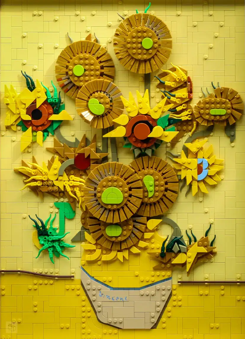 Czy sukces „Gwiaździstej Nocy” skłonił projektantów do ponownego sięgnięcia po dzieła van Gogha i stworzenia zestawu 31215 Vincent van Gogh – Słoneczniki? Owszem, jest to powszechnie podziwiany artysta, ale obecność dwóch jego dzieł w tak skromnym gronie obrazów przetłumaczonych na język LEGO to nie lada osiągnięcie. Na pierwszy rzut oka zestaw wydaje się wiernie odwzorowywać oryginalne płótno – ale przyjrzyjmy mu się bliżej.